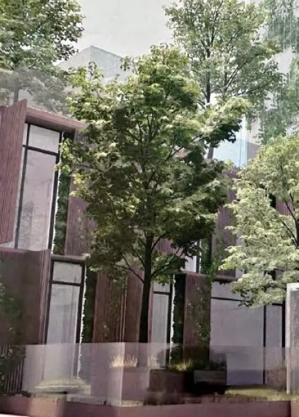 zwei begrünte Dachgärten mit Baumbepflanzung im Innenhof