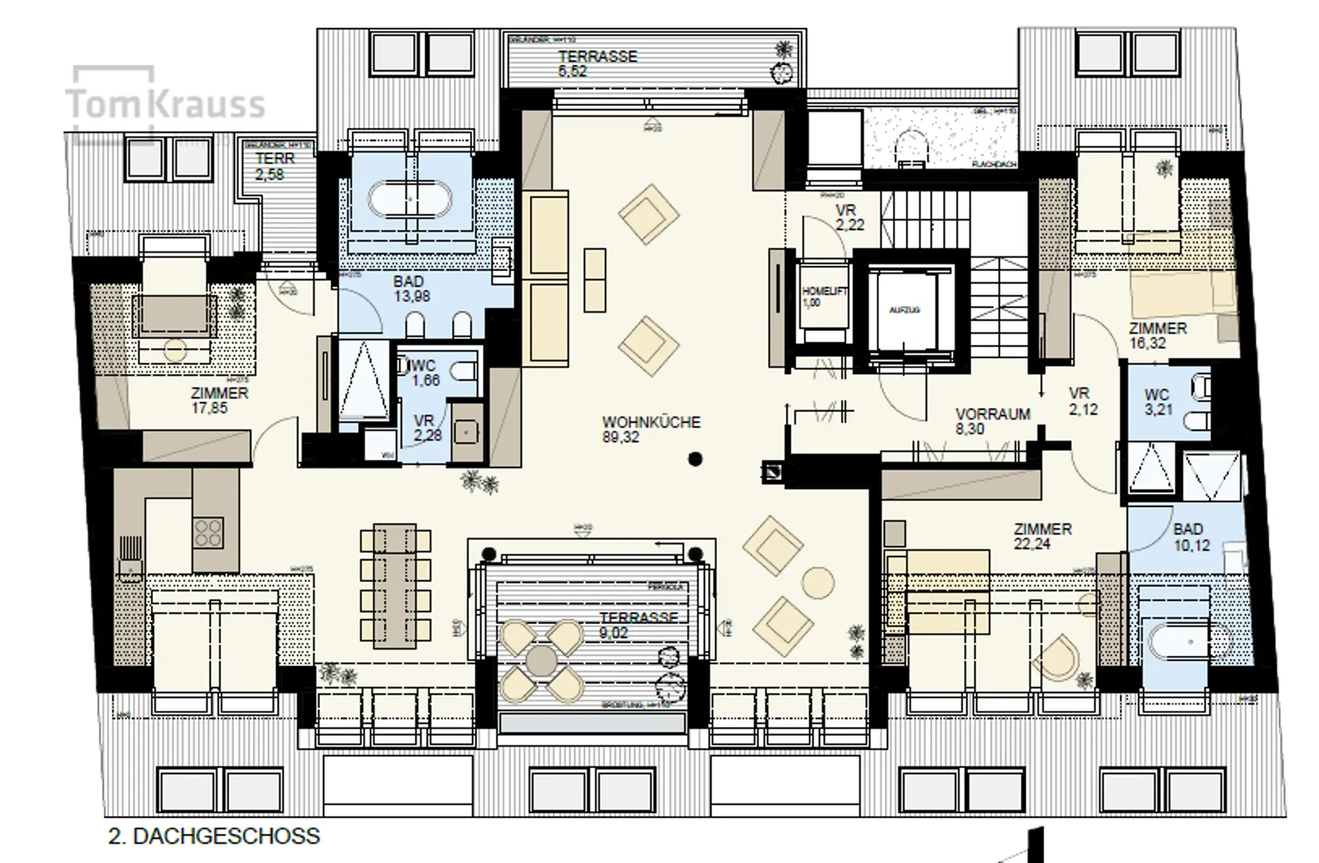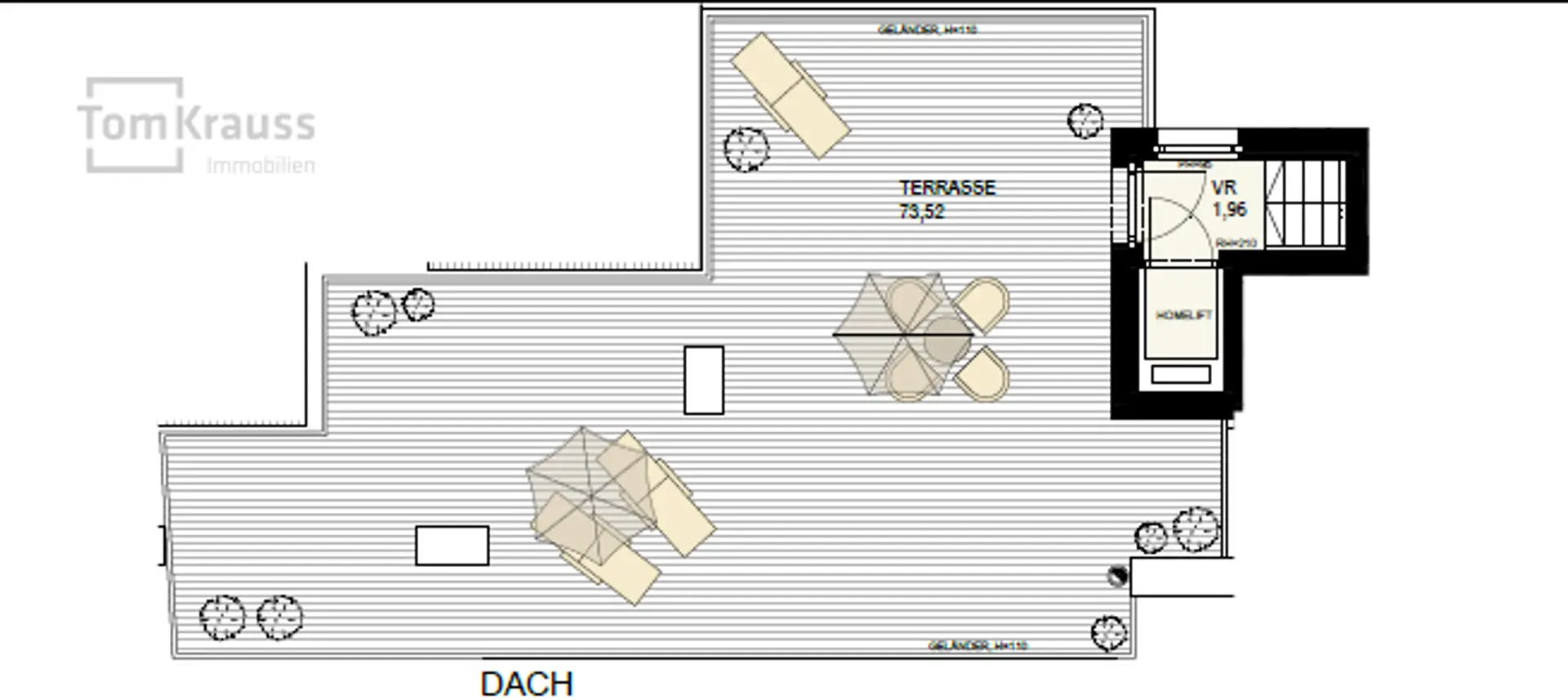 Des Weiteren verfügt die Wohnung über ein Highlight mit absolutem Seltenheitswert: einen zweiten Wohnungsinternen Lift der Sie auf Ihre Private Dachterrasse bringt. Das Penthouse verfügt über wenige Schrägen, trotz des höchsten Stockwerks im Haus, was für ein „loftiges“ und helles Raumgefühl sorgt. Zudem ist diese Einheit inkl. dem Zugang zur Dachterrasse komplett barrierefrei.