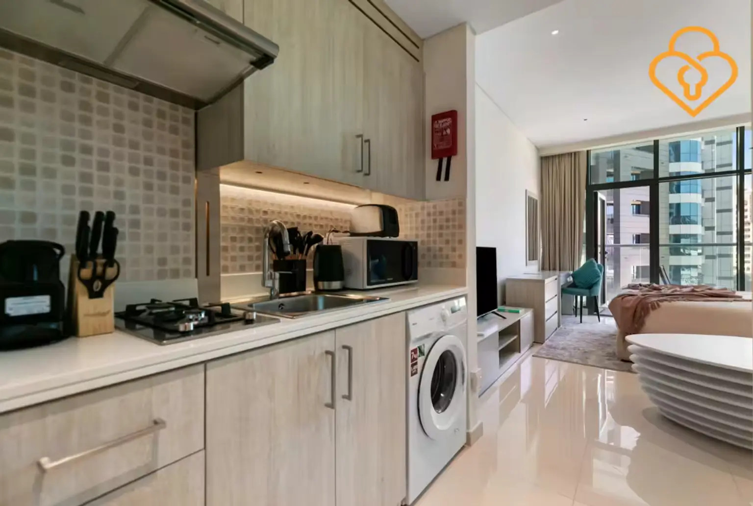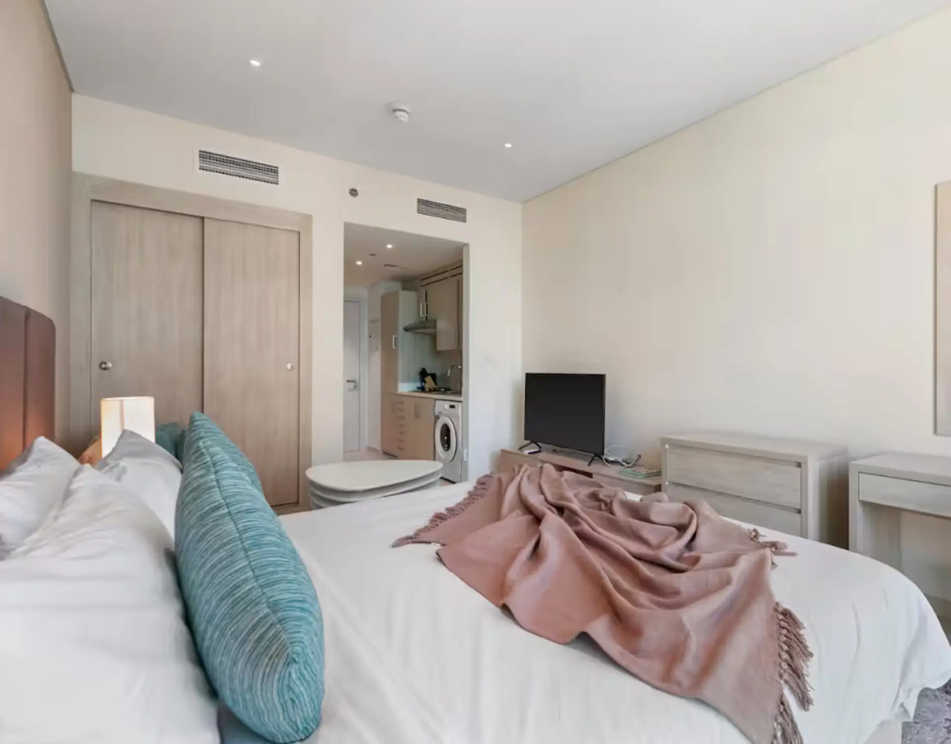 Das stilvoll und hochwertig möblierte Studio überzeugt durch modernes Design, elegante Ausstattung und höchsten Wohnkomfort. Den Bewohnern steht direkter Strandzugang zu den traumhaften Stränden der Palm Jumeirah zur Verfügung – inklusive Liegebereichen mit Handtüchern sowie optional mietbaren Cabanas und Sonnenliegen. Zur Ausstattung gehören zudem eine praktische Kitchenette, ein Flachbild-TV sowie kostenloses WLAN.