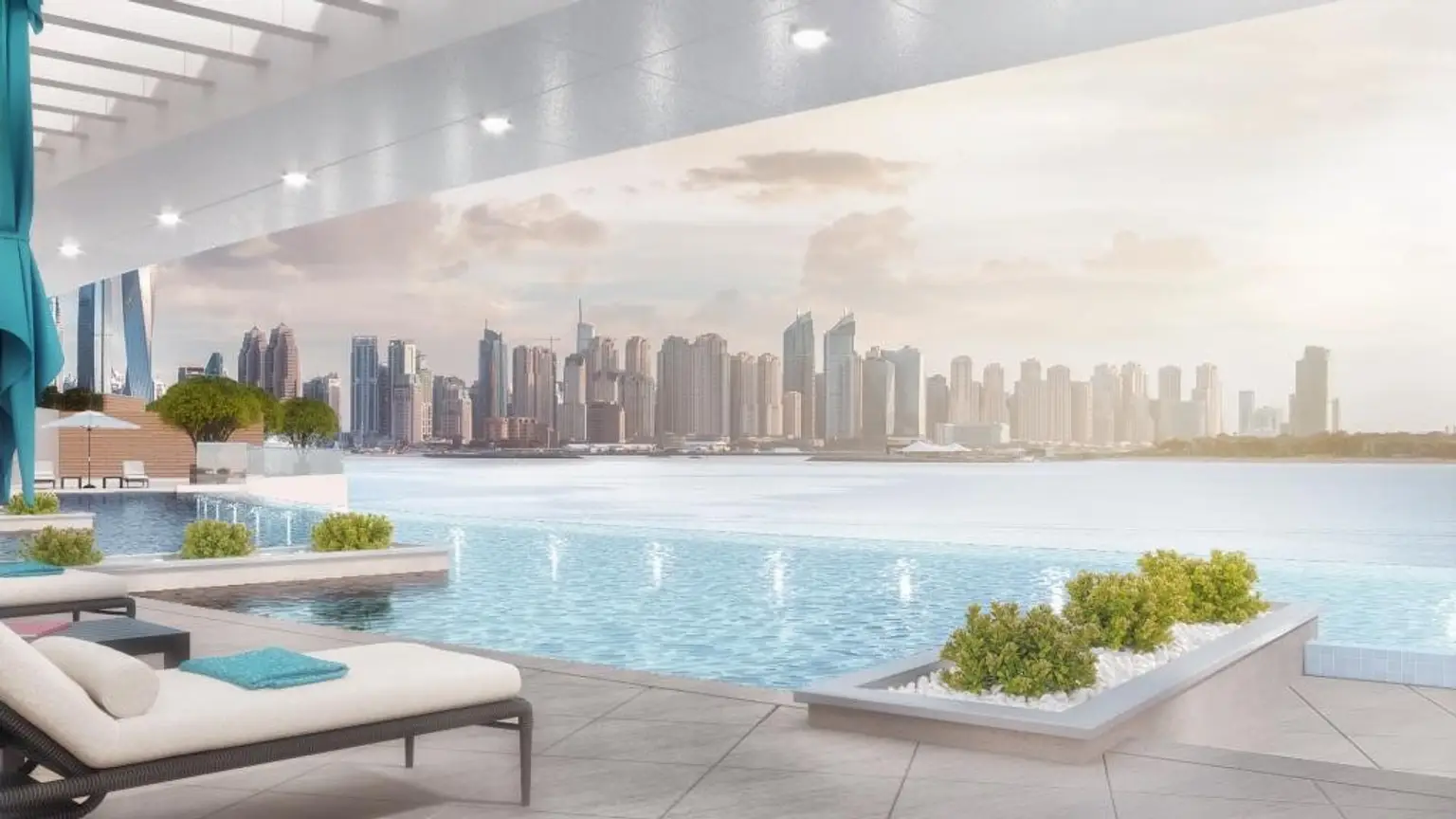 Ein absolutes Highlight ist die großzügige Dachterrasse mit dem größten schwebenden Infinity-Pool der Region, der einen unvergleichlichen Panoramablick bietet.