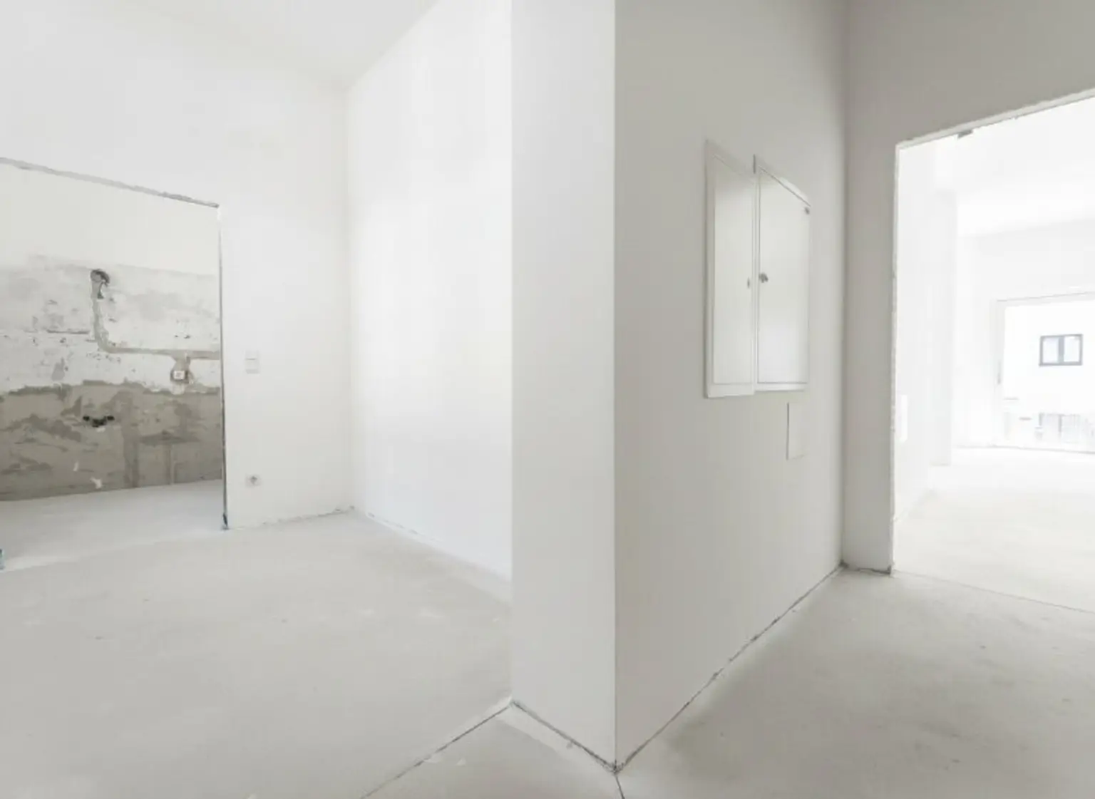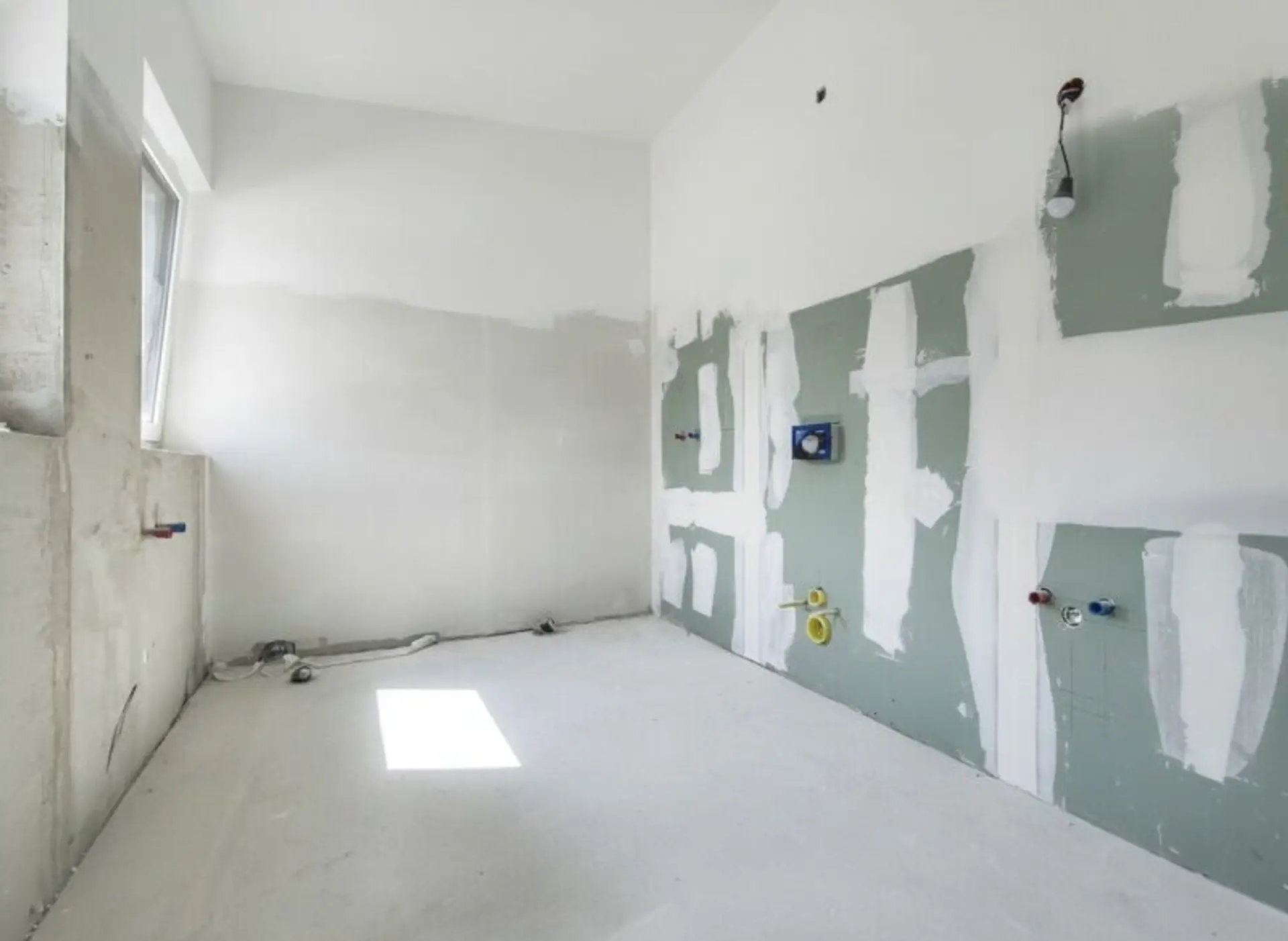 * Malerarbeiten innen: Die Wände und Trockenbauverkleidungen werden gespachtelt und mit