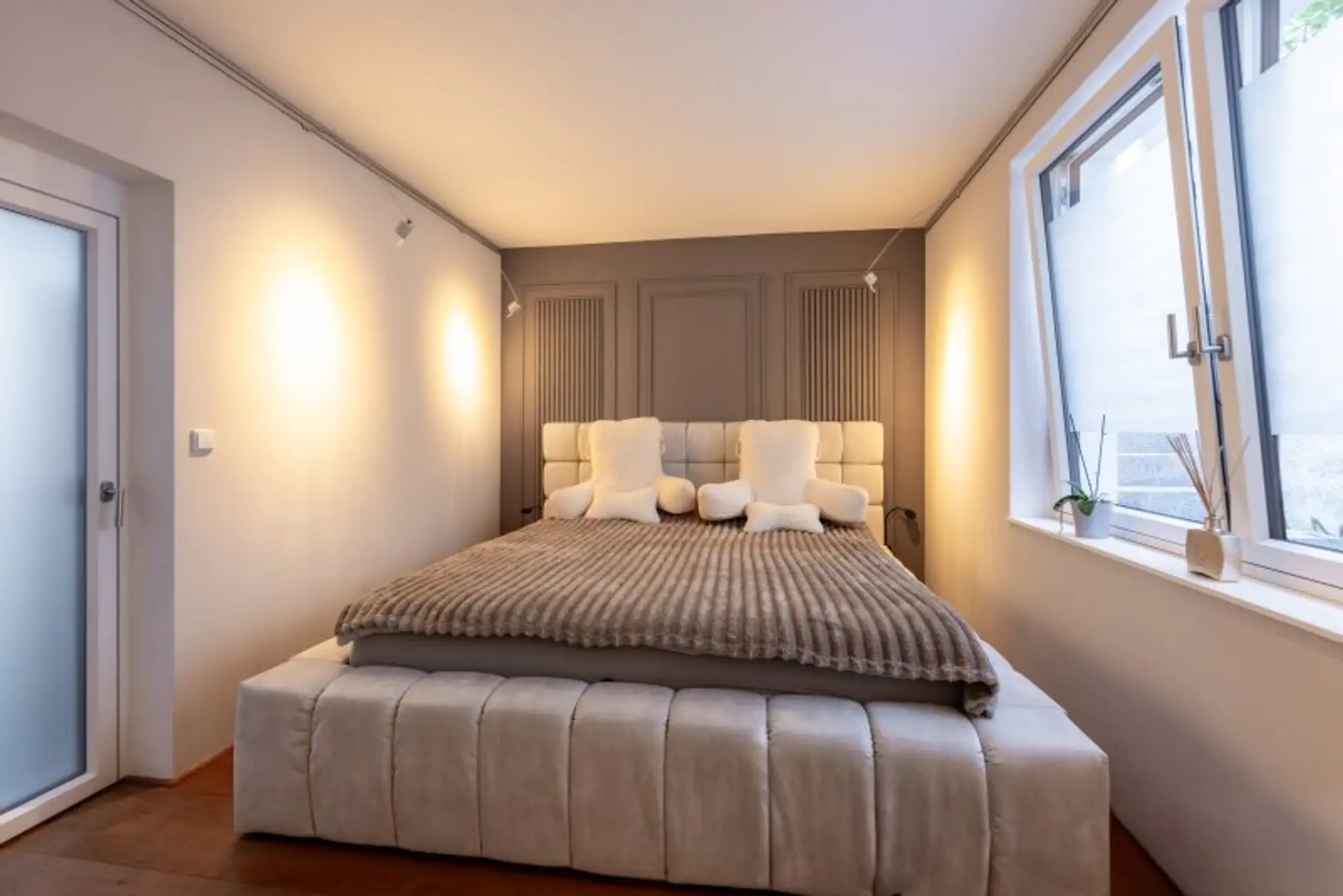 * Bodentiefe, dreifach verglaste Fenster mit elektrischen Raffstores