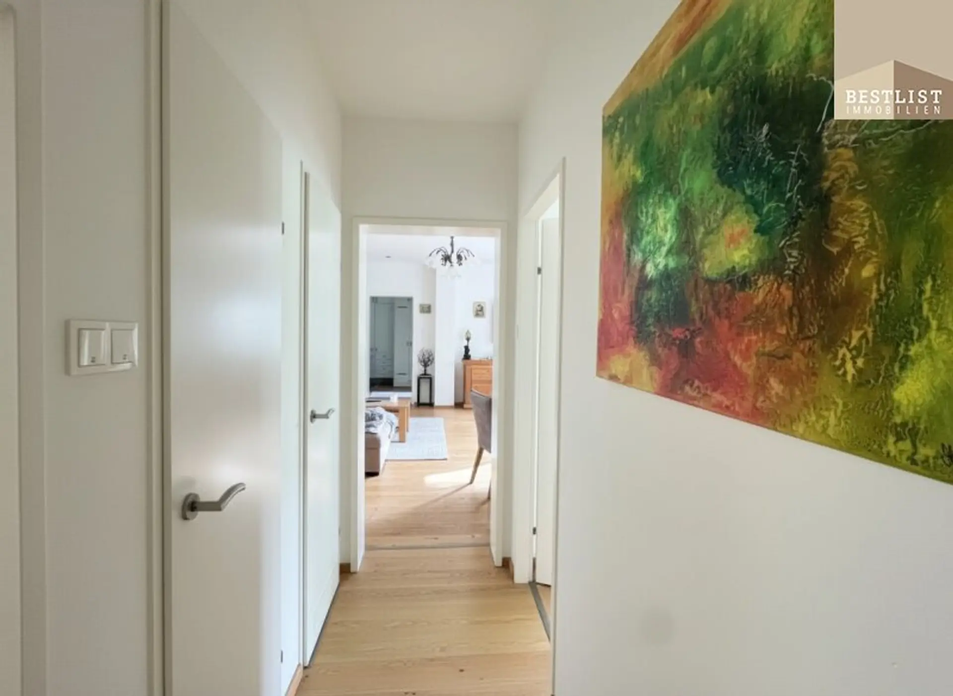 Schon beim Betreten der Wohnung spürt man die hochwertige Ausführung und das stimmige Gesamtkonzept. Edler Parkettboden zieht sich harmonisch durch die Räume und verleiht dem Zuhause eine warme, elegante Atmosphäre.