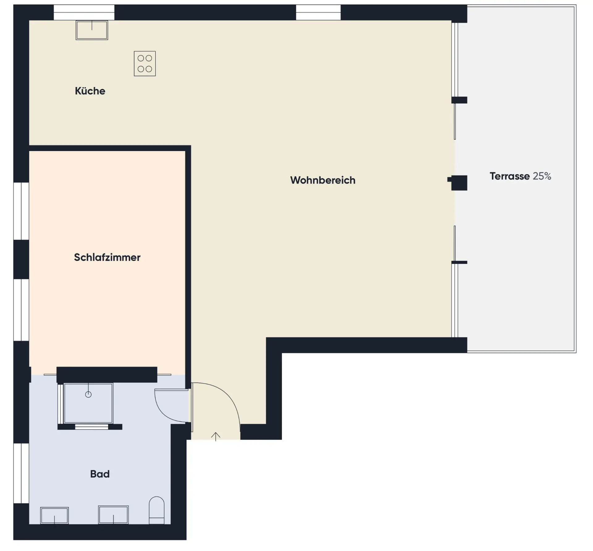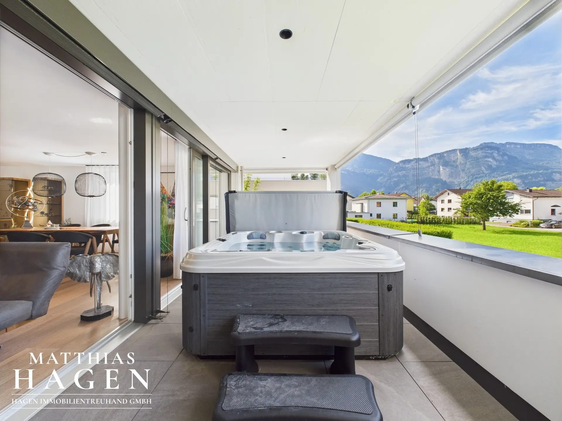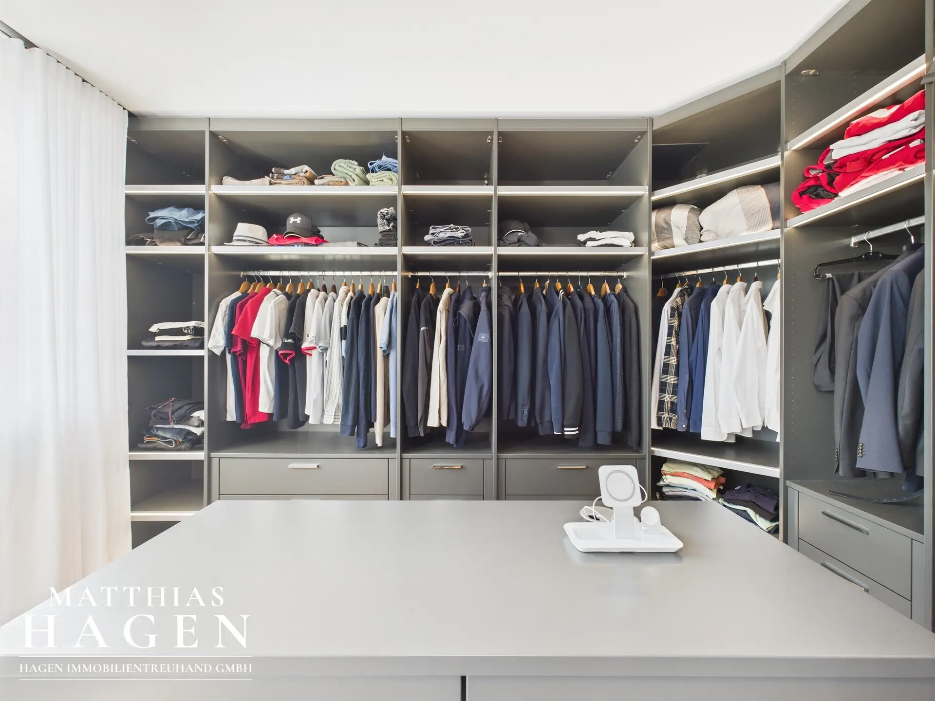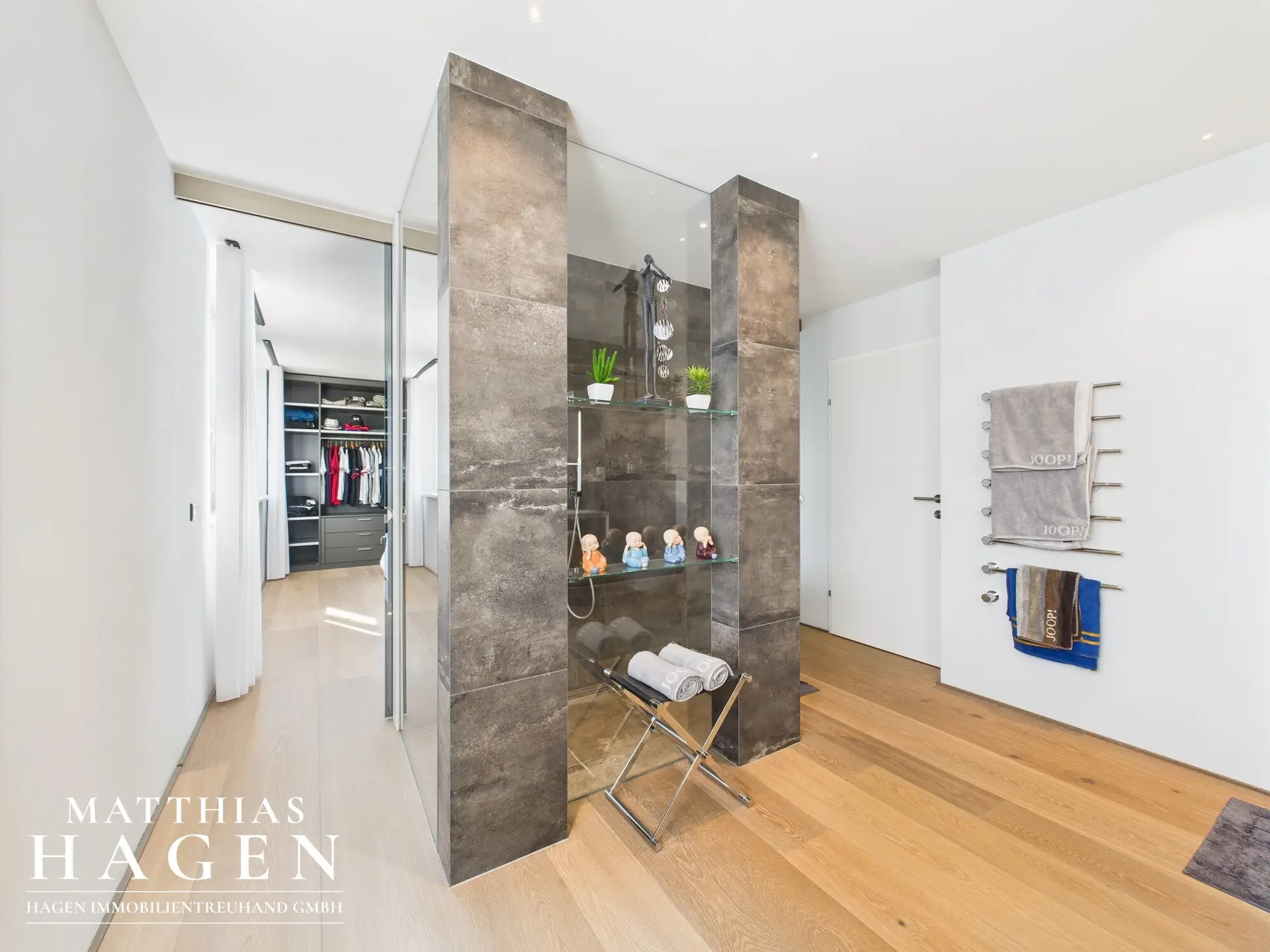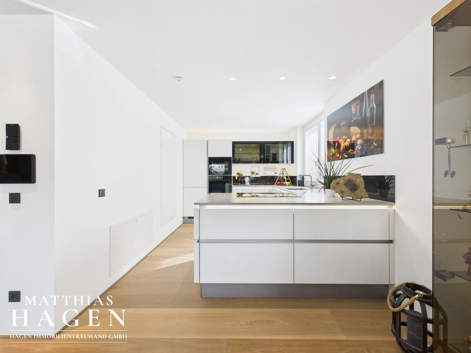 Die offen gestaltete Wohnfläche überzeugt mit einem durchdachten Grundriss und edler Ausstattung. Hochwertige Materialien, ein modernes BUS-System für smarte Steuerung von Licht, Heizung und Beschattung.