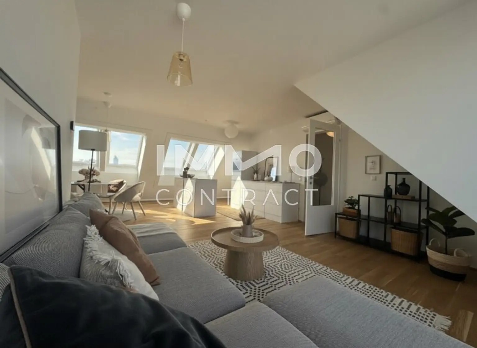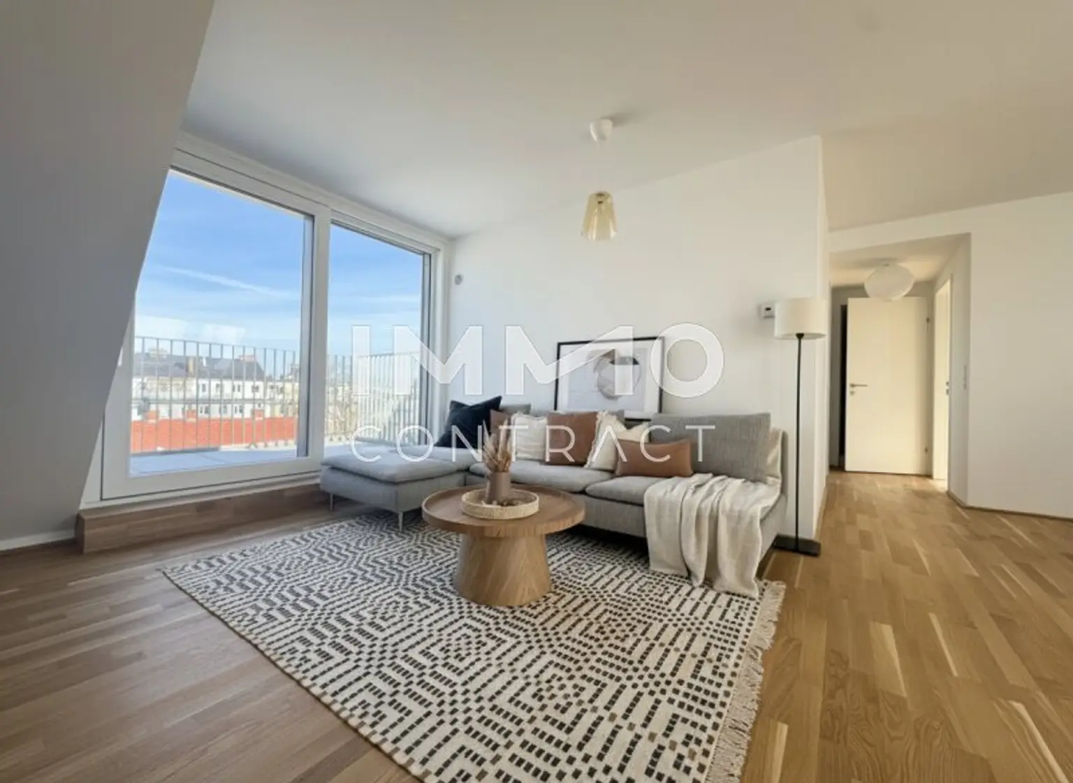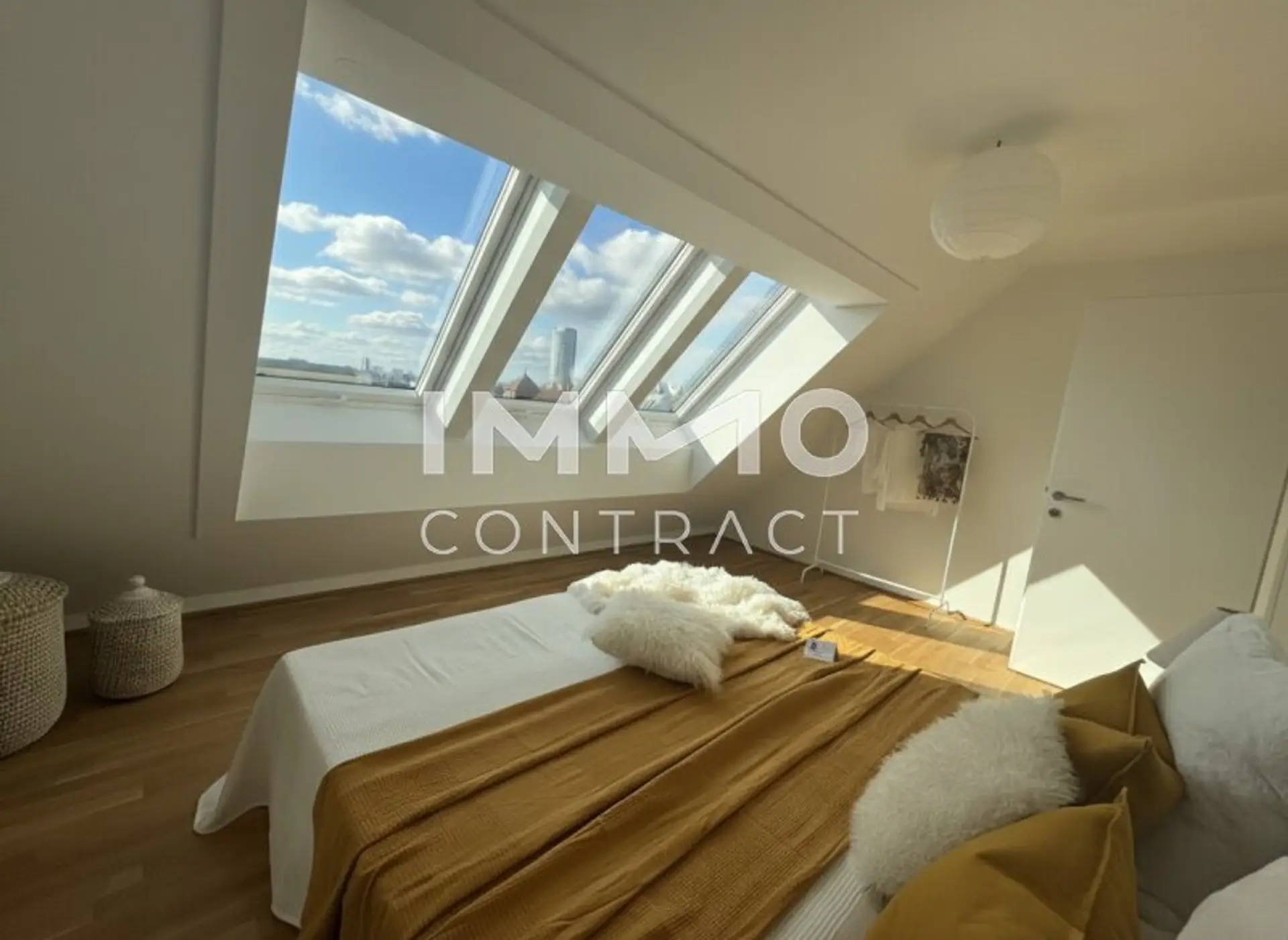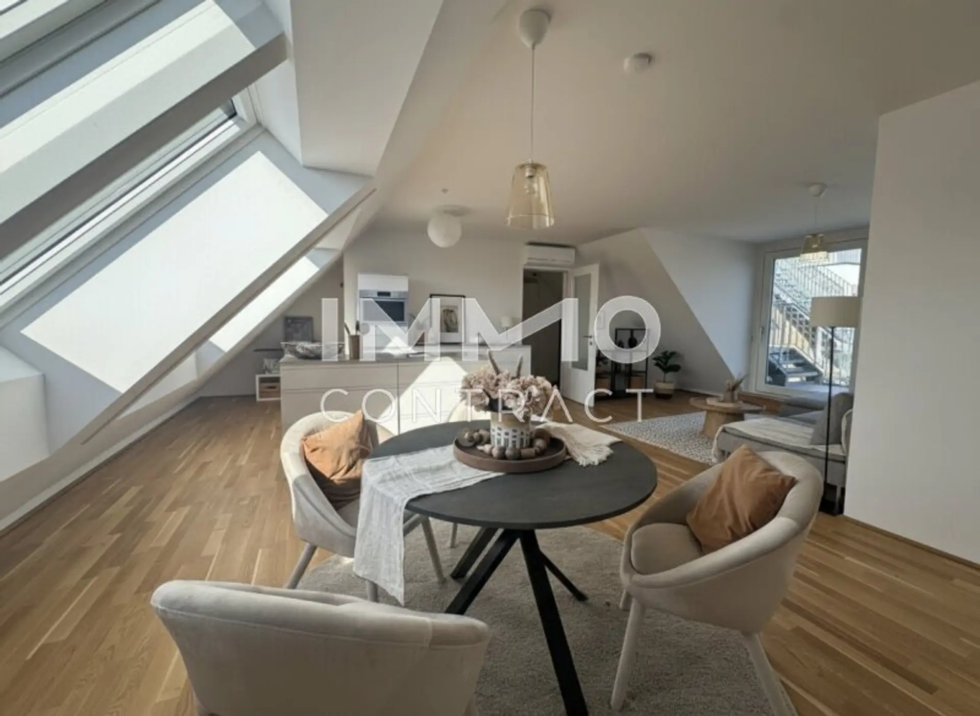 Willkommen in Ihrem neuen Zuhause: Diese großzügige, zentral begehbare 3-Zimmer-Dachgeschoßwohnung überzeugt mit rund 98 m² Wohnnutzfläche, einer Terrasse auf Wohnebene sowie einer privaten Dachterrasse mit beeindruckendem Rundumblick. Großflächige Dachfenster durchfluten die Räume mit natürlichem Licht, während Klimasplitgeräte in jedem Zimmer auch an heißen Sommertagen für angenehmen Wohnkomfort sorgen. Die rund 45 m² große, durchgesteckte Wohnküche mit Nord-Süd-Ausrichtung und direktem Terrassenzugang bildet das Herzstück der Wohnung und ermöglicht ideales Querlüften. Zwei weitere Zimmer, ein großzügiges Badezimmer mit freistehender Badewanne, Dusche und Doppelwaschtisch, ein Gäste-WC sowie ein praktischer Abstellraum runden dieses exklusive Wohnangebot in verkehrsberuhigter Lage perfekt ab.