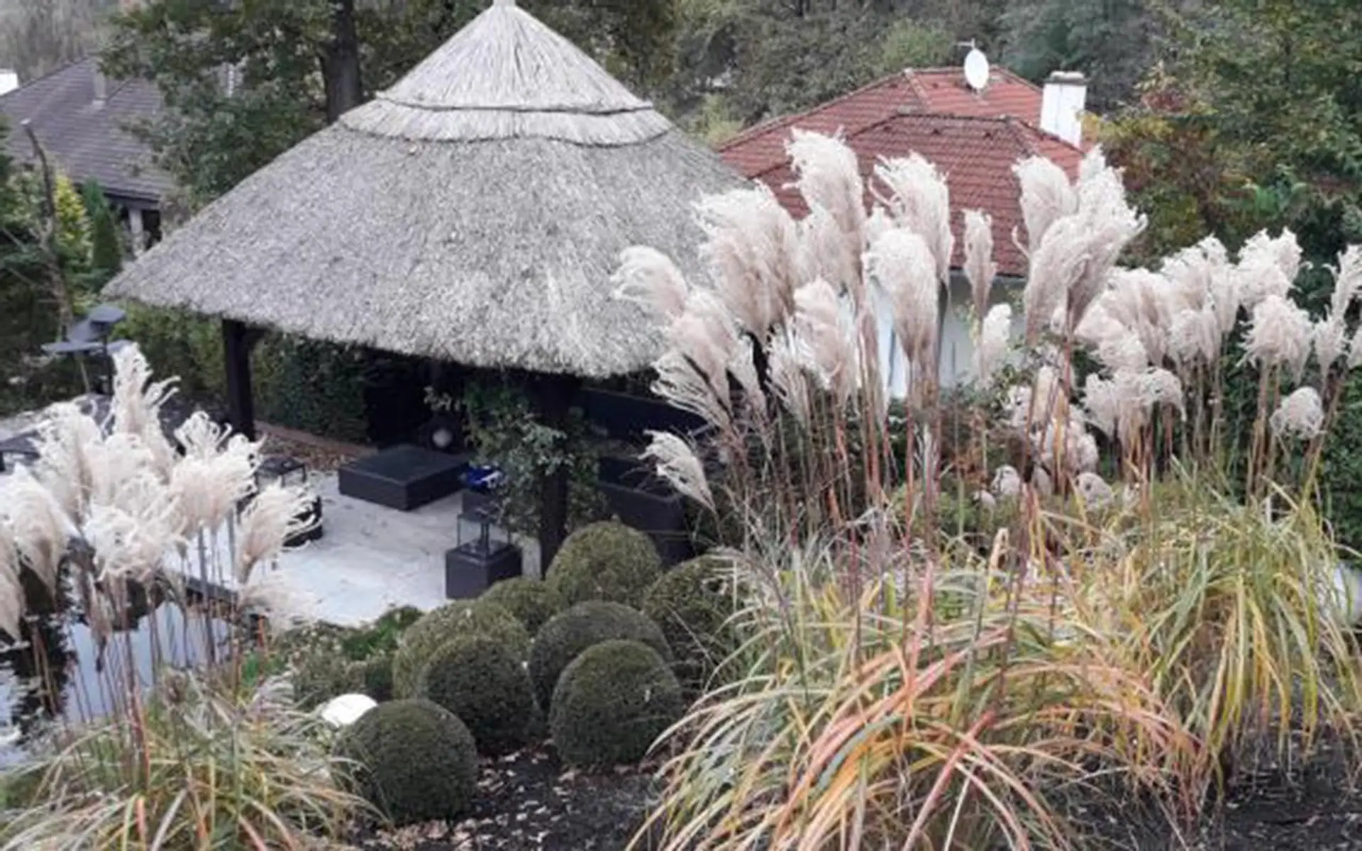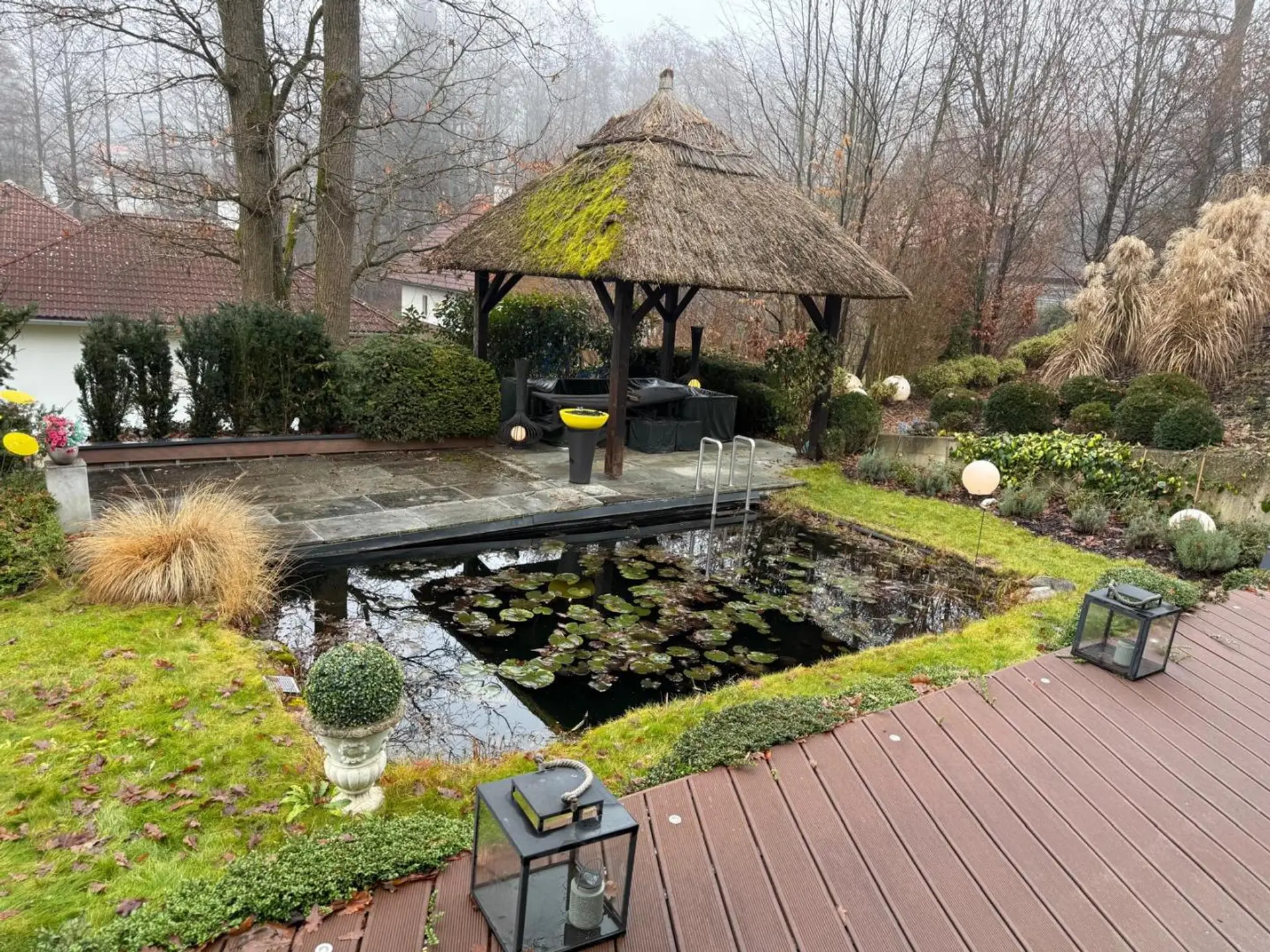 Der Außenbereich ist integraler Bestandteil des Wohnkonzepts: Balihütte, Sonnenschirm-Terrasse, weitläufige Gartenflächen sowie Wasser- und Ruhebereiche schaffen eine Atmosphäre, die täglich an Urlaub erinnert. Vollautomatische Bewässerung und Rasenpflege sorgen dabei für maximalen Komfort. Eine gepflasterte Doppelgarage, auch repräsentativ als Empfang nutzbar, rundet das Anwesen stimmig ab.