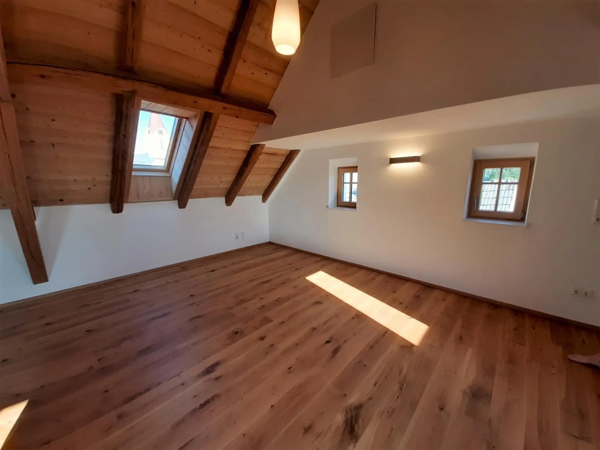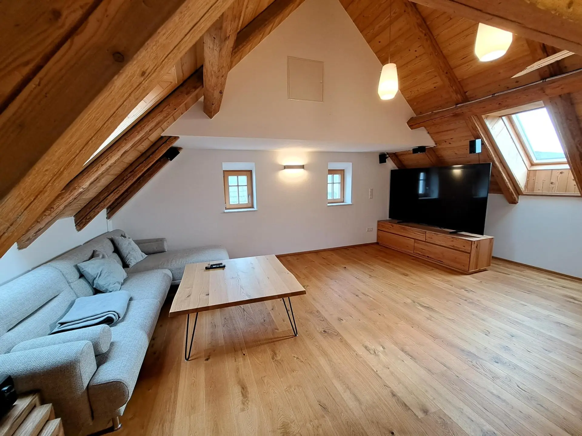 - Sichtdachstuhl mit restaurierten 100 Jahre alten Sparren