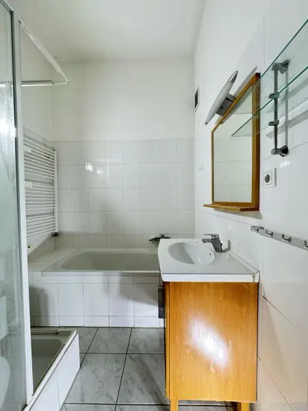 Ein Bad mit Wanne und Dusche, ein separates WC sowie ein zusätzlicher Stauraumraum von ca. 6 m² ergänzen die Wohnung um praktische, komfortable Details, die den Alltag erleichtern.