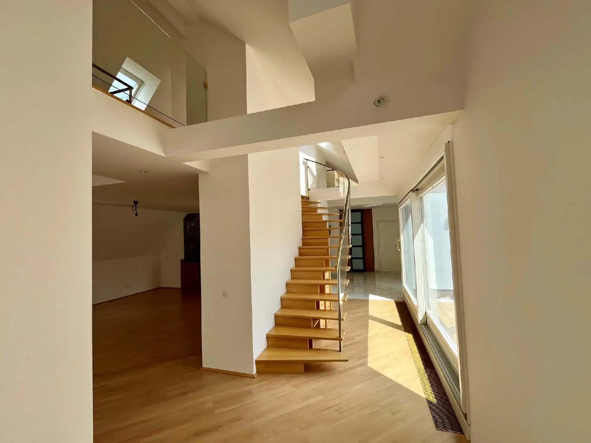 Großzügige architektonische Gestaltung mit viel Liebe zum Detail, interessanten Sichtachsen und unendlich viel Stauraum. Luxus Tischler und Steinmetz Einbauten von höchster Material und Ausführungsqualiät in ausgezeichnetem Zustand. Designerküche mit neuen Einbaugeräten. Eine opulente Wohnoase zum rundum Wohlfühlen und Verlieben! Durch einen weitläufigen Vorraum, gelangt man rechts in ein Gäste WC und links durch eine Schiebetüre auf die goßzügigen zweigeschossigenTerrassen. Die Terassen sind bereits begrünt und verfügen über einen Bewässerungsautomaten. Der eigentliche Wohnbereich beeindruckt durch seine schiere Größe und Raumhöhe, sowie durch eine postmoderne Architektur. Der Wohnbereich gliedert sich auf in einen Essbereich und eine Wohnecke mit Kamin, von der aus man einen weiten Blick in die offenen Räumlichkeiten und die Galerie genießt .Gleich daneben liegt der klimatisierte Masterbedroom mit Vorraum/begehbarer Garderobe sowie einem angschlossenen, luxuriösen Marmor Badezimmer mit Whirlpoolbadewanne und Duschkabine mit Seitenbrausen und edlen Villeroy & Boch Armaturen. Direkt durch den Vorraum betritt man geradeaus die Küche, ein absoluter Hingucker, in exotischer Gestaltung aus schwarzem Granit und Marmor, sowie Küchenschänken aus gestreiften Hölzern in Hochganzlack. Gleich dahinter befinden sich eine Arbeitsraum mit zusätzlicher Abwasch, einem zusätzlichen Kühlschrank, sowie ein Abstellraum mit Tiefkühltruhe. Durch eine langen Gang mit praktischen Kästen gelangt man linkerhand in ein Badezimmer mit Dusche, sowie in das Arbeitszimmer mit Bibliothek. Dieses Zimmer könnte man gegebenenfalls als drittes Schlafzimmer nützen! Rechts vom Gang liegt ein Schlafzimmer mit eingebautem Bett und Kästen in edler Nussholzausführung. Direkt begebar davon eine kleine Terasse mit Pflanzentrögen und Bewässerungsautomat. Vom Wohnraum gelangt man über eine schwebende Holztreppe in die weitläufige Galerie mit vielen Bücherregalen, welche als Leseecke oder Kinderpsielplatz fungieren kann. Von der Galerie aus betritt man den klimatisierten Wintergarten, der durch seine rundliche, spektakuläre Dackkonstruktion an das Cockpit eines Raumschiffs erinnert. Ein Platz zur Zusammenkuft unter dem Himmel! Lage Die Wohnung befindet sich in einer sehr begehrten Gegend und Ruhelage angrenzend dem Kleingartenverein Schmelz mit zahlreichen Nahversorgern und Gastronomiebetrieben. Die nahegelegene Hütteldorfer Straße mit dem Meiselmarkt bietet mit Ihrer Station "Johnstraße" Zugang zu diversen öffentlichen Verkehrsmitteln (U3, 10A, 12A sowie Straßenbahnlinie 49), die Sie bequem und schnell in die Wiener Innenstadt bringen. Der Westbahnhof mit verschiedenen Zugsanbindungen lässt sich ebenfalls in ca. 12 Minuten erreichen.
