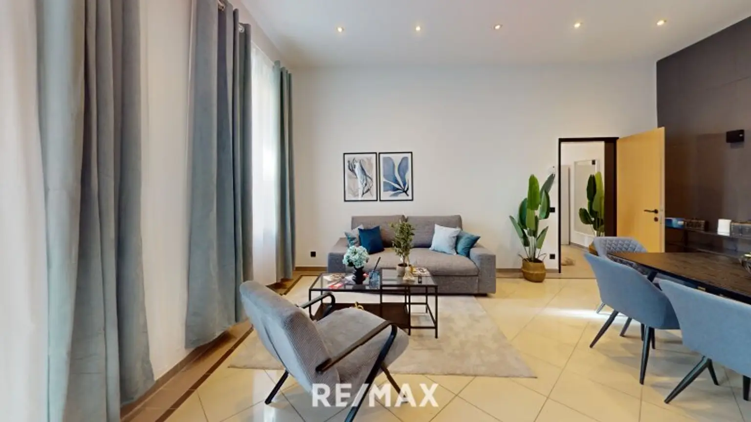 Zum Verkauf steht diese geschmackvolle Terrassenwohnung mit einer Wohnnutzfläche von 85,54 m² + einer 65,06 m² großen Terrasse in einem im Jahr 1990 renovierten Altbau mit DG-Aufbau.