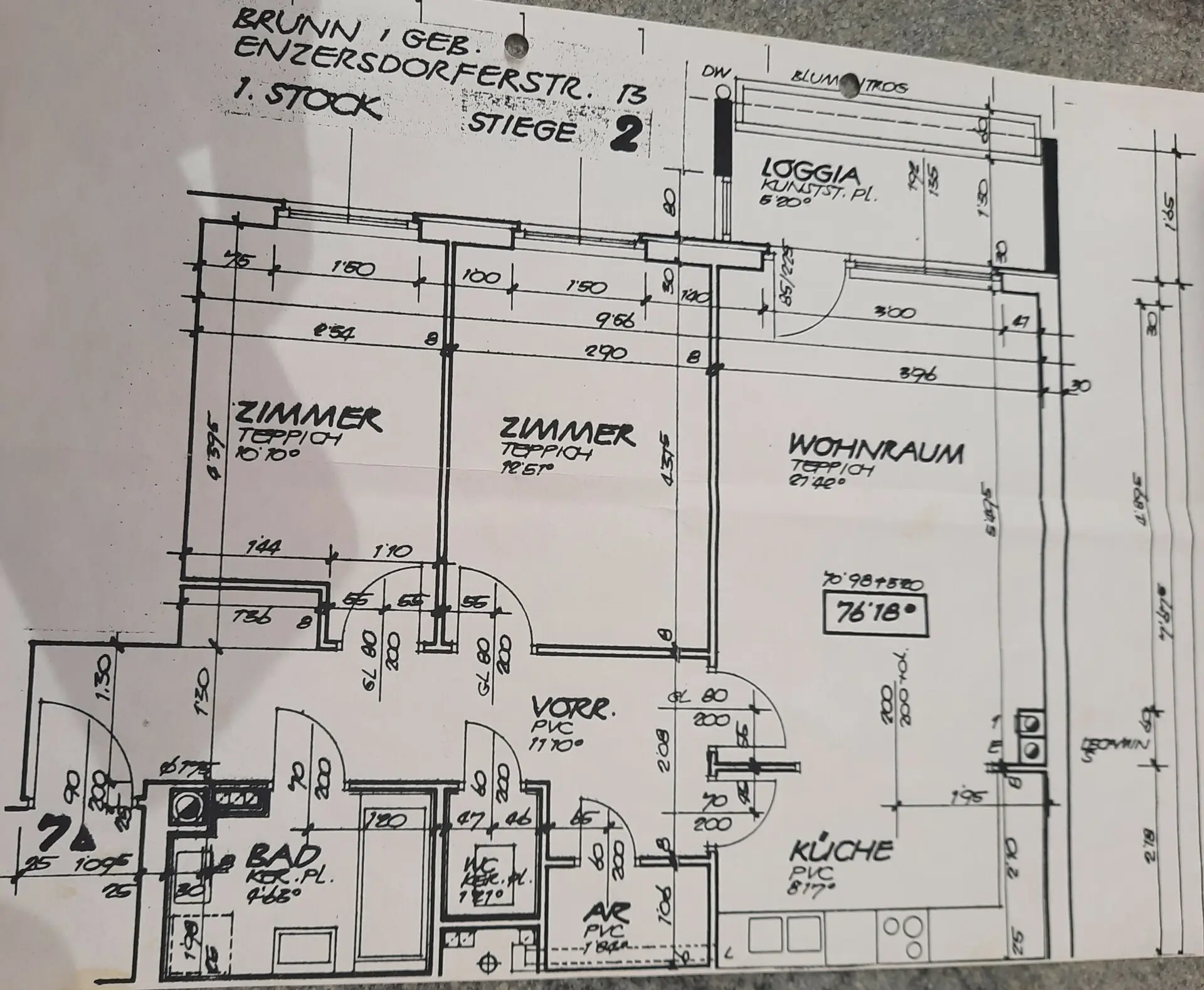 Wohnfläche 78m² im 1. Stock, ostseitig ausgerichtet, mit einer schönen Loggia mit Grünblick und einem Tiefgaragenstellplatz.