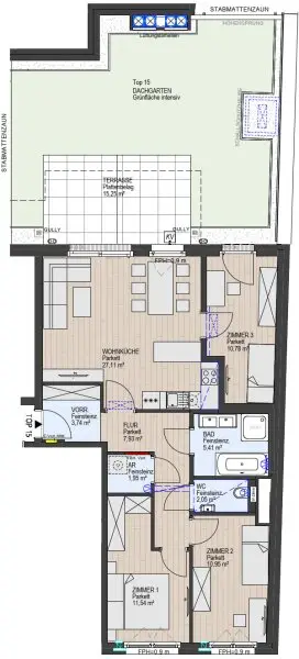 Ausstattung: Boden Bad Abstellraum Fußbodenheizung Terrasse Garten