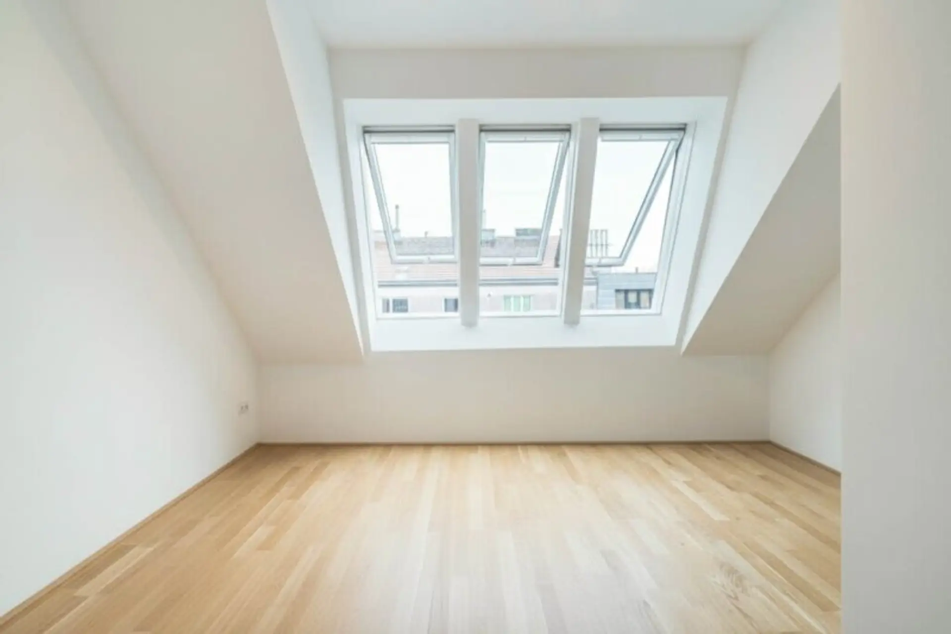 Die Wohnung wird über den Vorraum im 1. Dachgeschoss betreten, der ausreichend Platz für eine Garderobe bietet.