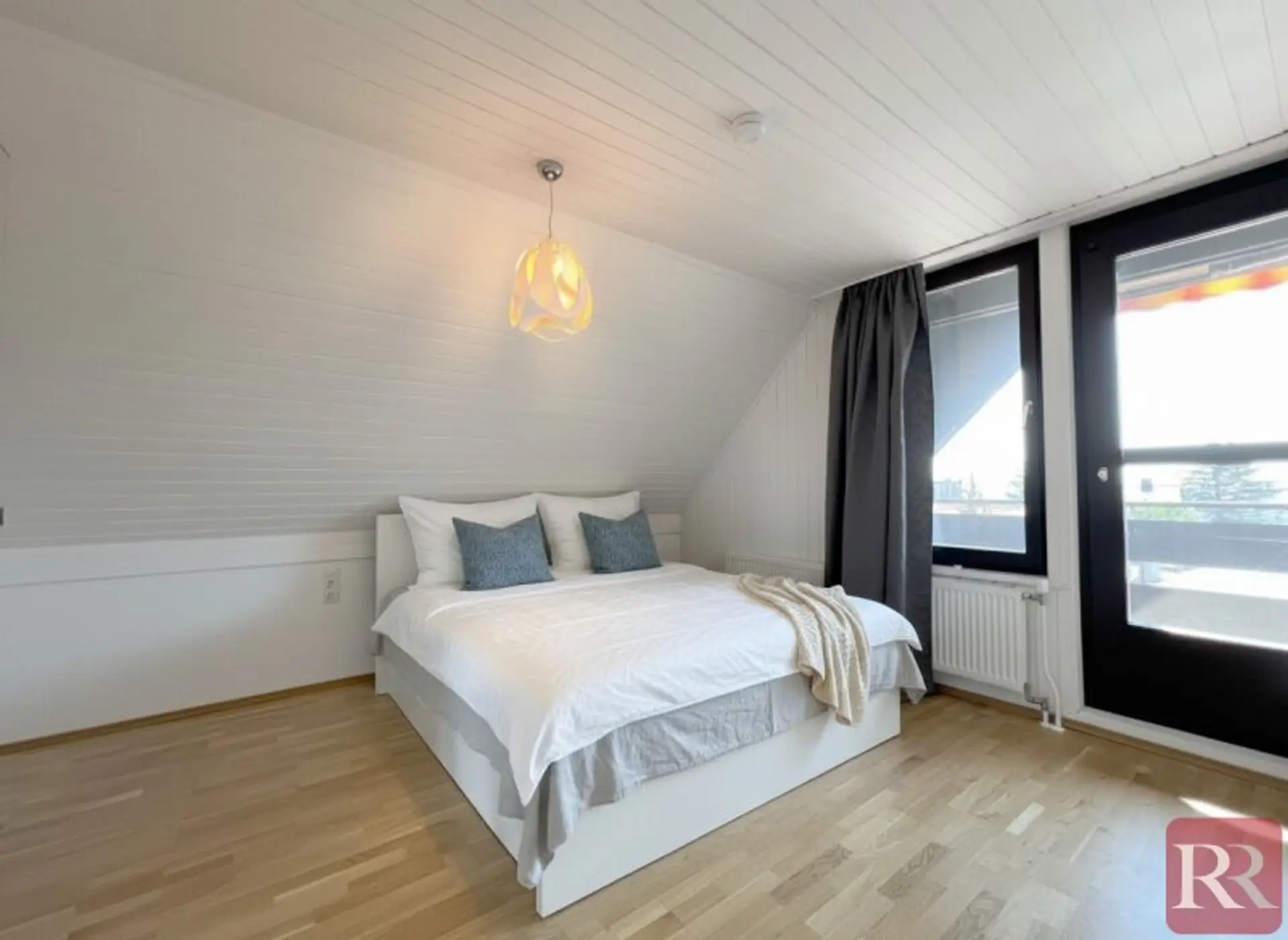 Im Obergeschoß (ca. 72m²) finden Sie drei Räume - einen weiteren Wohnbereich mit Balkon und zwei Schlafzimmer wobei bei einem der Zimmer das Bad mit Wanne und Dusche angeschlossen ist.
