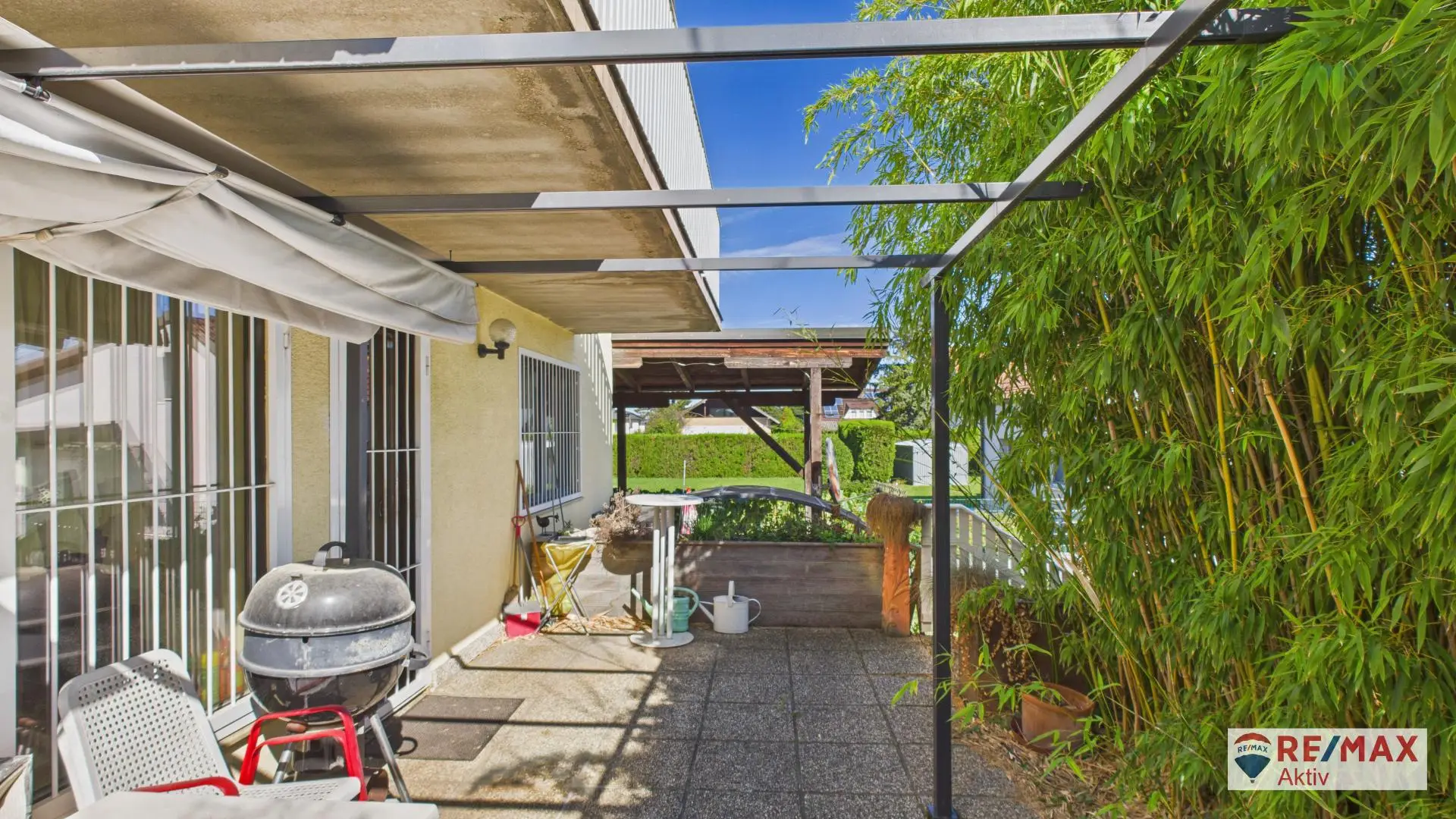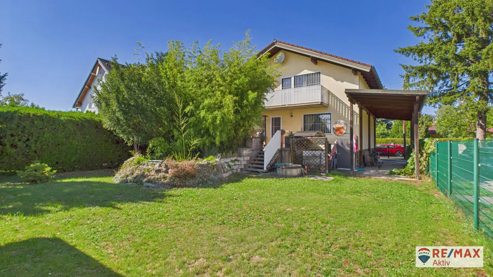 Der Garten überzeugt mit einer angenehmen Größe und bietet vielfältige Nutzungsmöglichkeiten. Neben einer Garage und drei Carports stehen auch ein Gartenschuppen sowie ein kleiner Fischteich zur Verfügung – perfekt für Gartenliebhaber und Familien.