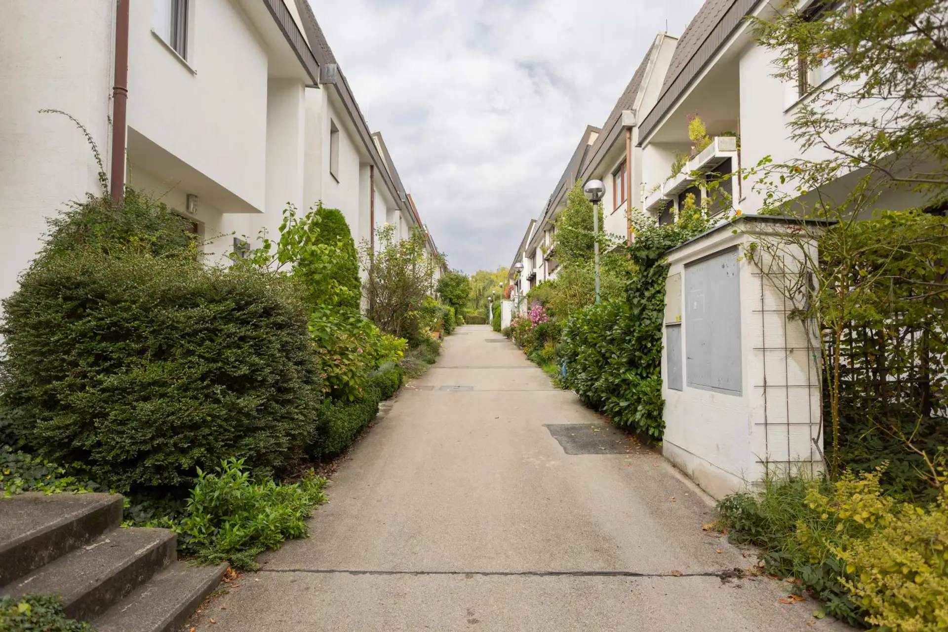 Besonders hervorzuheben: Das Haus bietet auf beiden Seiten „freie Sicht“ , da es keine direkten Nachbarn vis-à-vis gibt – eine seltene Qualität bei Reihenhäusern.