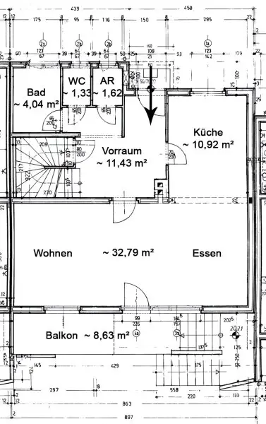 Ausgang auf den Balkon mit Außentreppe in den Garten