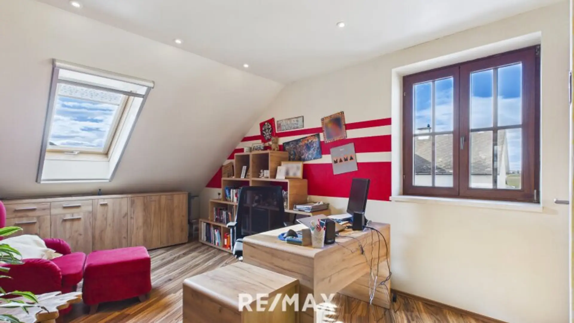 Das ausgebaute Dachgeschoss bietet ideale Voraussetzungen für Kinder, Gäste oder das Arbeiten von zu Hause: