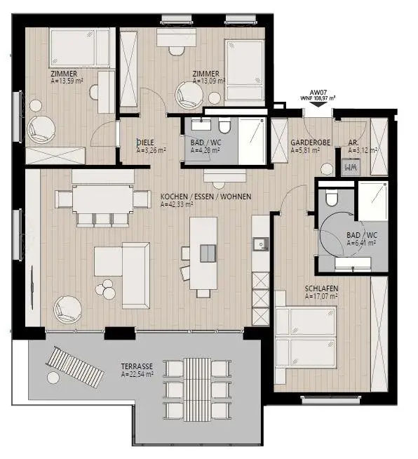 Unsere Familien-Wohnungen sind auf ein lebenswertes Miteinander mit ausreichend viel Platz für alle Anforderungen und jedes Alter konzipiert worden.