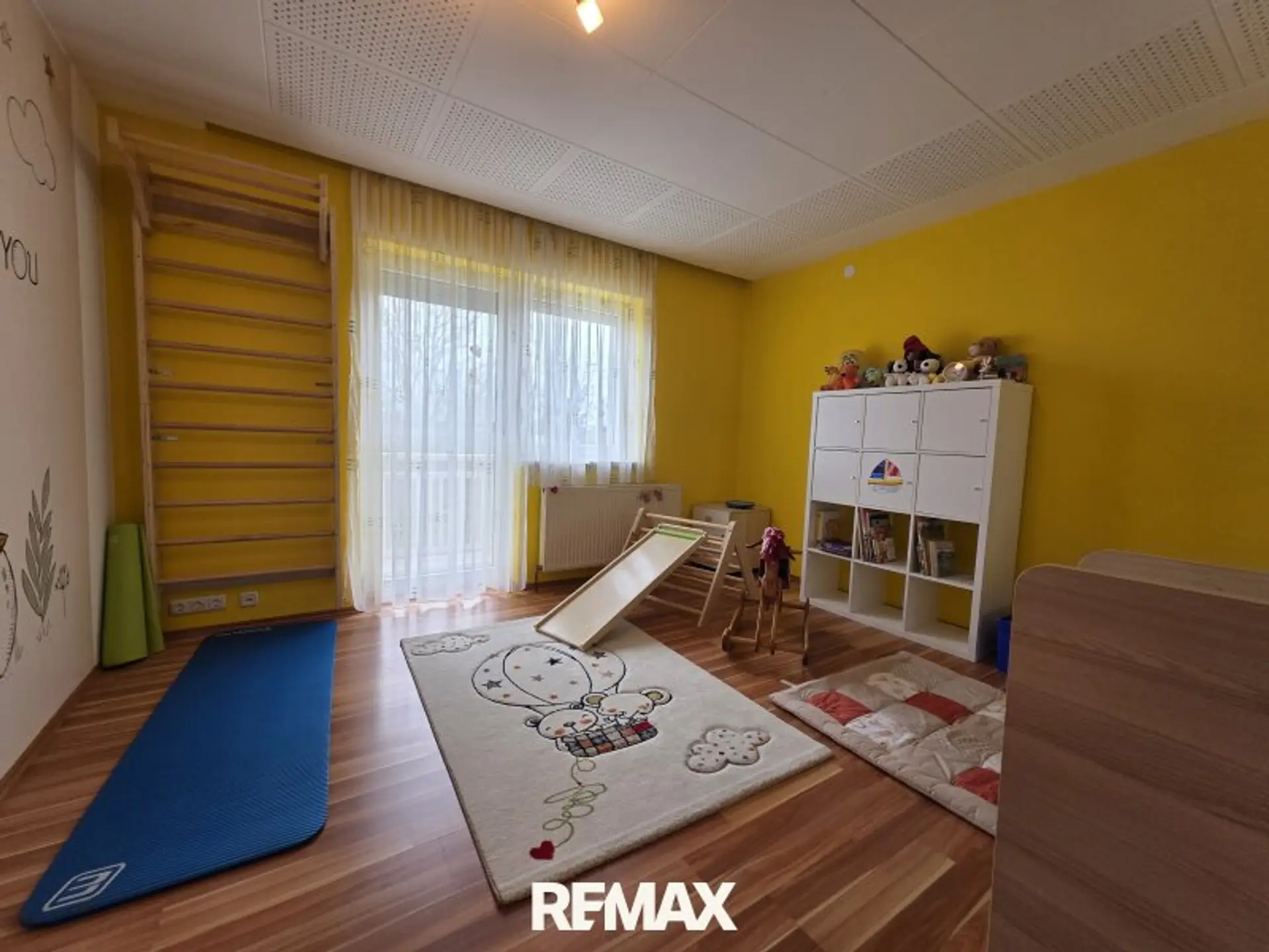 Im Obergeschoss erwarten Sie zwei helle Kinderzimmer mit Balkonzugang, ein Schlafzimmer sowie ein großzügiges Badezimmer mit Badewanne und Dusche. Ein weitläufiger Flur sorgt für ein offenes Raumgefühl und zusätzliche Nutzungsmöglichkeiten.