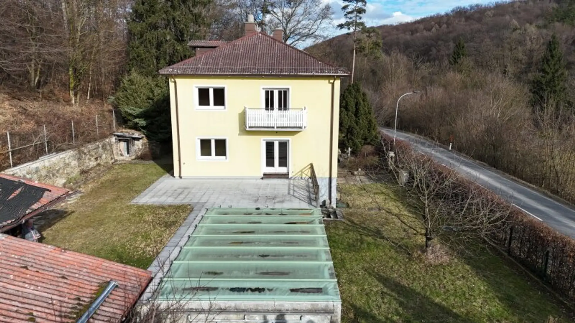 Nebengebäude, Terrasse, Balkon und Garage
