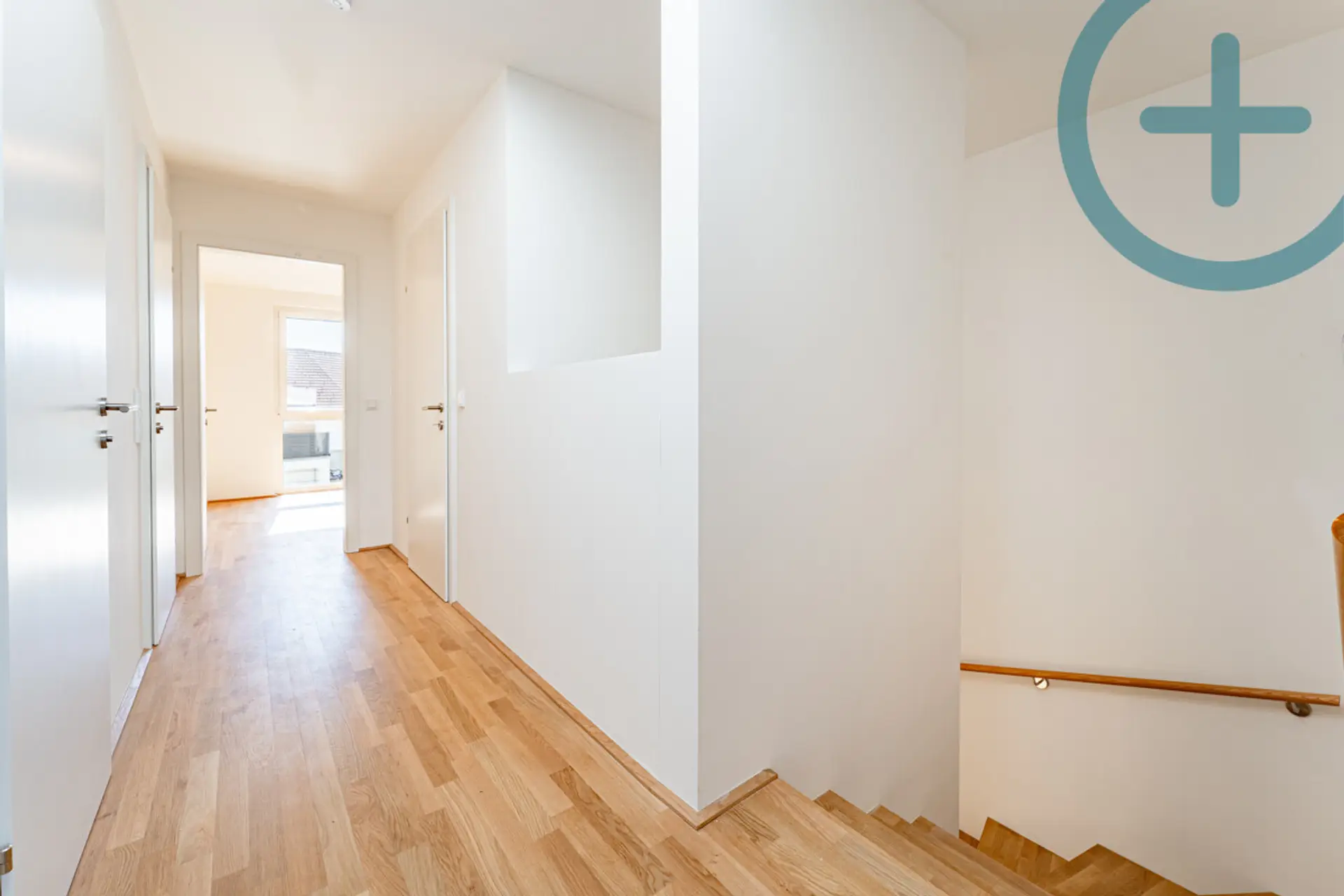 Dieses charmante Reihenhaus ist das ideale Zuhause für Familien, die Wert auf ein großzügiges Wohnzimmer und einen großen, sonnigen Garten legen. Auf rund 119 m² Wohnfläche verteilt über zwei Ebenen überzeugt das Haus mit durchdachter Raumaufteilung und gemütlicher Wohnatmosphäre. Bereits im Eingangsbereich erwartet Sie ein heller Vorraum mit ausreichend Platz für die Garderobe. Der Küchenbereich mit 14m² grenzt direkt an den offene Wohn- und Essbereich mit rund 29m² an. Gemeinsam bilden sie das Herzstück des Hauses. Durch die großen Fensterflächen öffnet sich der Raum zur Terrasse und in den rund 100 m² großen Garten, der sich deutlich von anderen Reihenhäusern abhebt. Er bietet Kindern viel Platz zum Spielen und lädt Erwachsene gleichermaßen zum Entspannen oder geselligen Beisammensein ein. Die separate Küche ist praktisch angeordnet und lässt sich individuell mit modernen Einbauten gestalten. Ein Badezimmer mit Dusche, Handwaschbecken und WC ergänzt das Raumangebot im Erdgeschoss. Im Obergeschoss befinden sich die privaten Rückzugsorte: ein großzügiges Elternschlafzimmer mit Platz für einen Arbeits- oder Schminkbereich sowie zwei helle Kinderzimmer, die dank ihrer freundlichen Atmosphäre perfekte Wohlfühlräume für den Nachwuchs sind. Das stilvolle Tageslichtbad verfügt über eine Badewanne, Handwaschbecken und Waschmaschinenanschluss, das WC ist separat begehbar. Ein rund 4,5 m² großer Abstellraum sorgt zusätzlich für praktischen Stauraum.