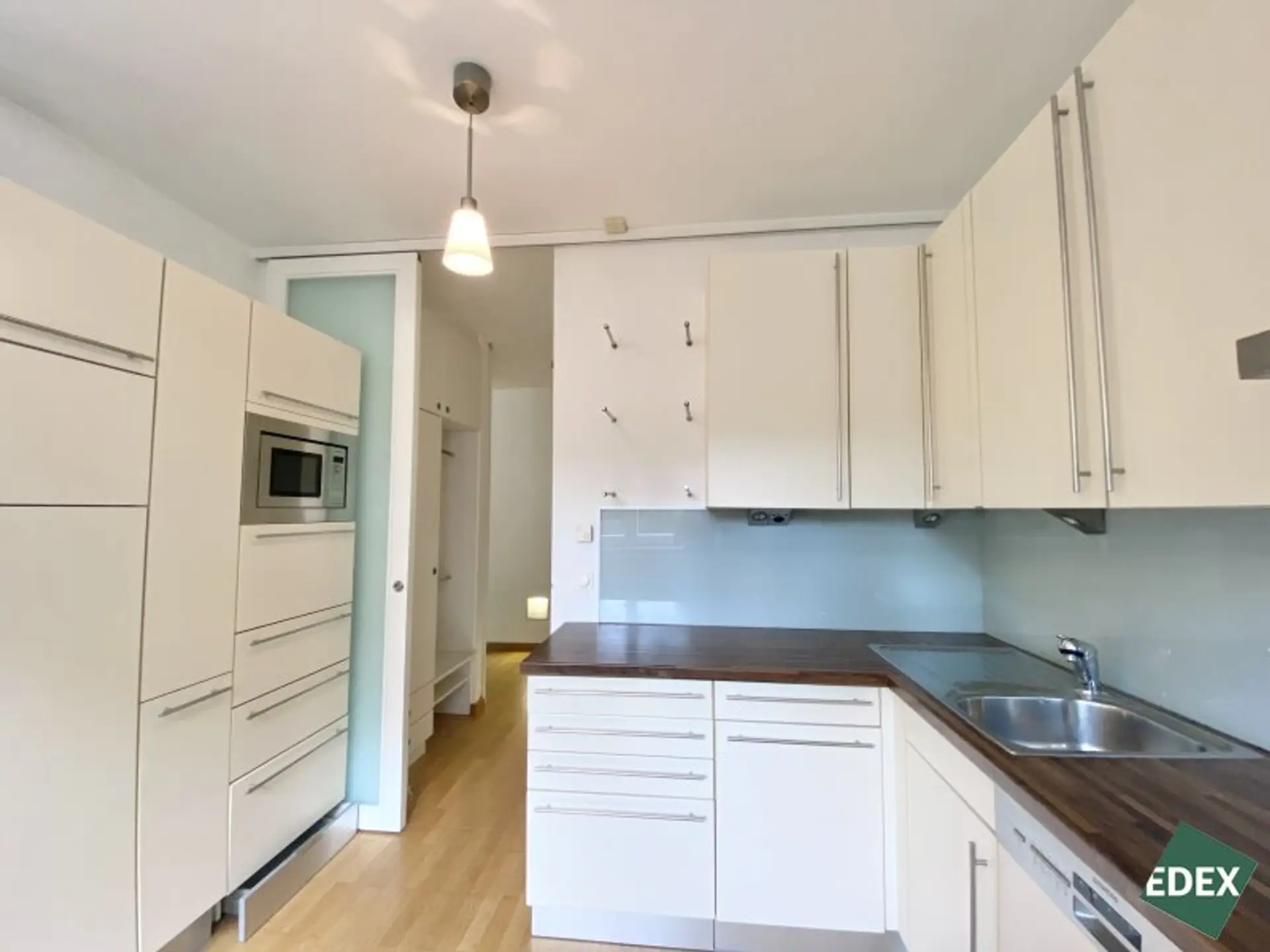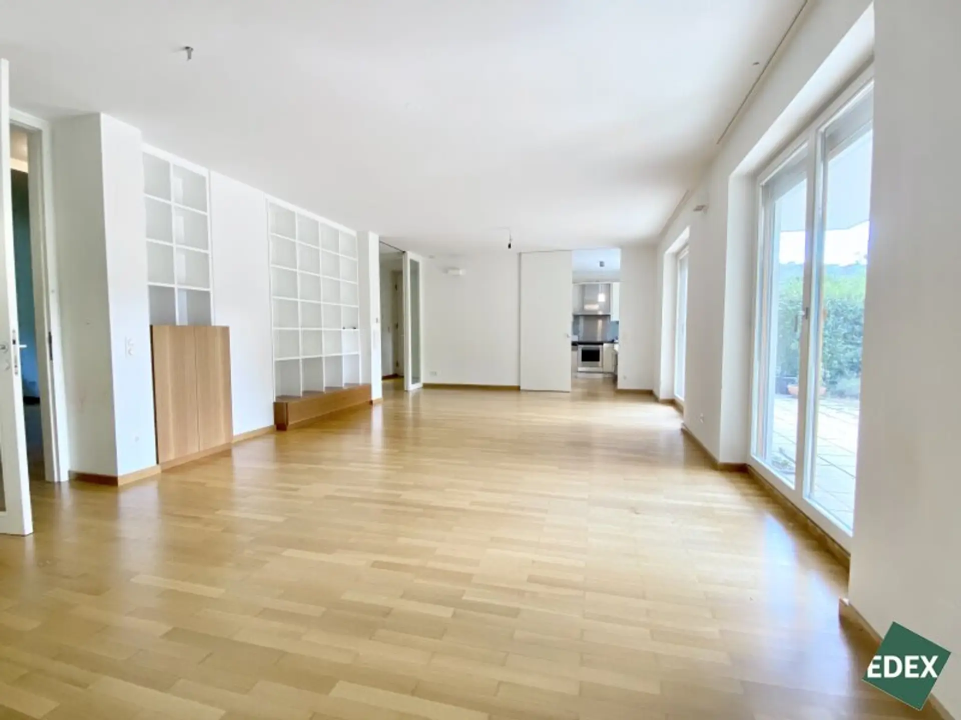 Die helle ca. 118 m² große Wohnung liegt im Erdgeschoss eines gepflegten Neubaus in- bester Döblinger Lage. Sie verfügt über einen zentralen Vorraum mit praktischen Einbauschränken für die Garderobe, drei Schlafzimmer, ein Bad mit Badewanne, WC Waschmaschinenanschluss, eine Abstellraum sowie ein separates WC. Praktische Einbauschränke und Regale im Vorraum und im Wohnzimmer bieten optimalen Stauraum. Highlight der Wohnung ist das große Wohnzimmer mit anschließender Küche, von dem man auf eine ca. 37 m² große Terrasse und in den Garten gelangt. Eine Markise mit Fernsteuerung sorgt für angenehme Beschattung auf der Terrasse. Die Wohnräume sind mit Parkettboden und die Nassräume mit Fliesen ausgestattet. Geheizt wird mittels Fußbodenheizung mit einer Gastherme. Für zusätzlichen Stauraum sorgen ein Kellerabteil.