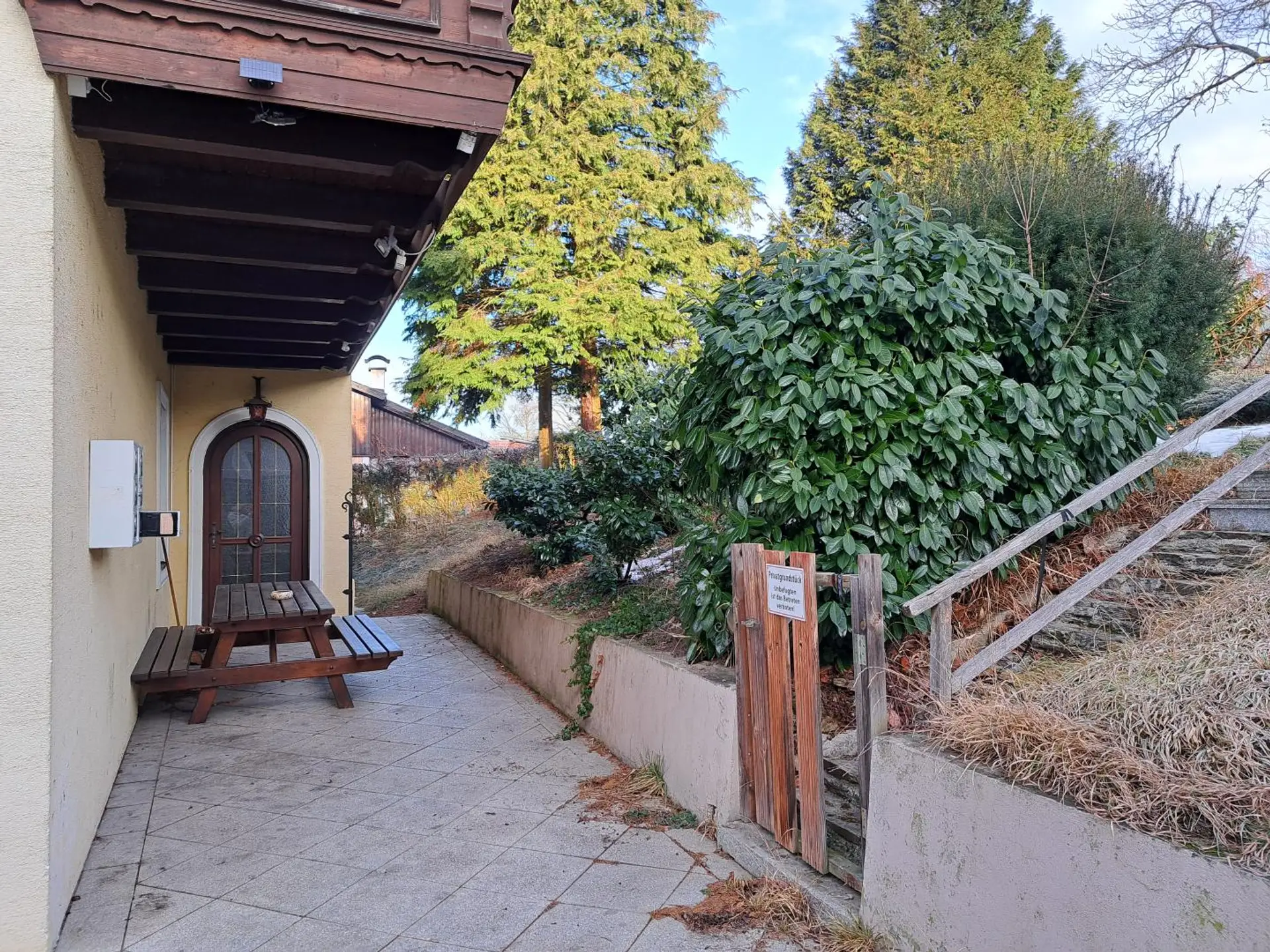 Im Erdgeschoß befindet sich eine ca. 70 m² große Wohnung. Diese besteht aus Wohnzimmer, Schlafzimmer, Gästezimmer, Wohnküche, Vorraum mit Kachelofen, Bad (2 Duschen) und einem separaten WC.