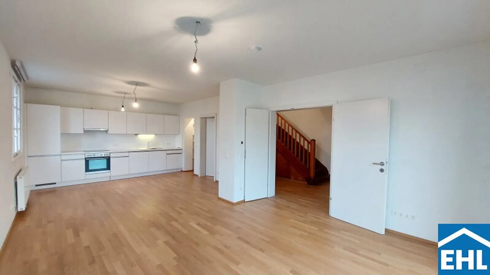 Im Erdgeschoß erwartet Sie ein einladender Eingangsbereich, ein großzügiger Wohnbereich mit Küchenzeile, Speis und Zugang zum Balkon, außerdem ein separates WC.