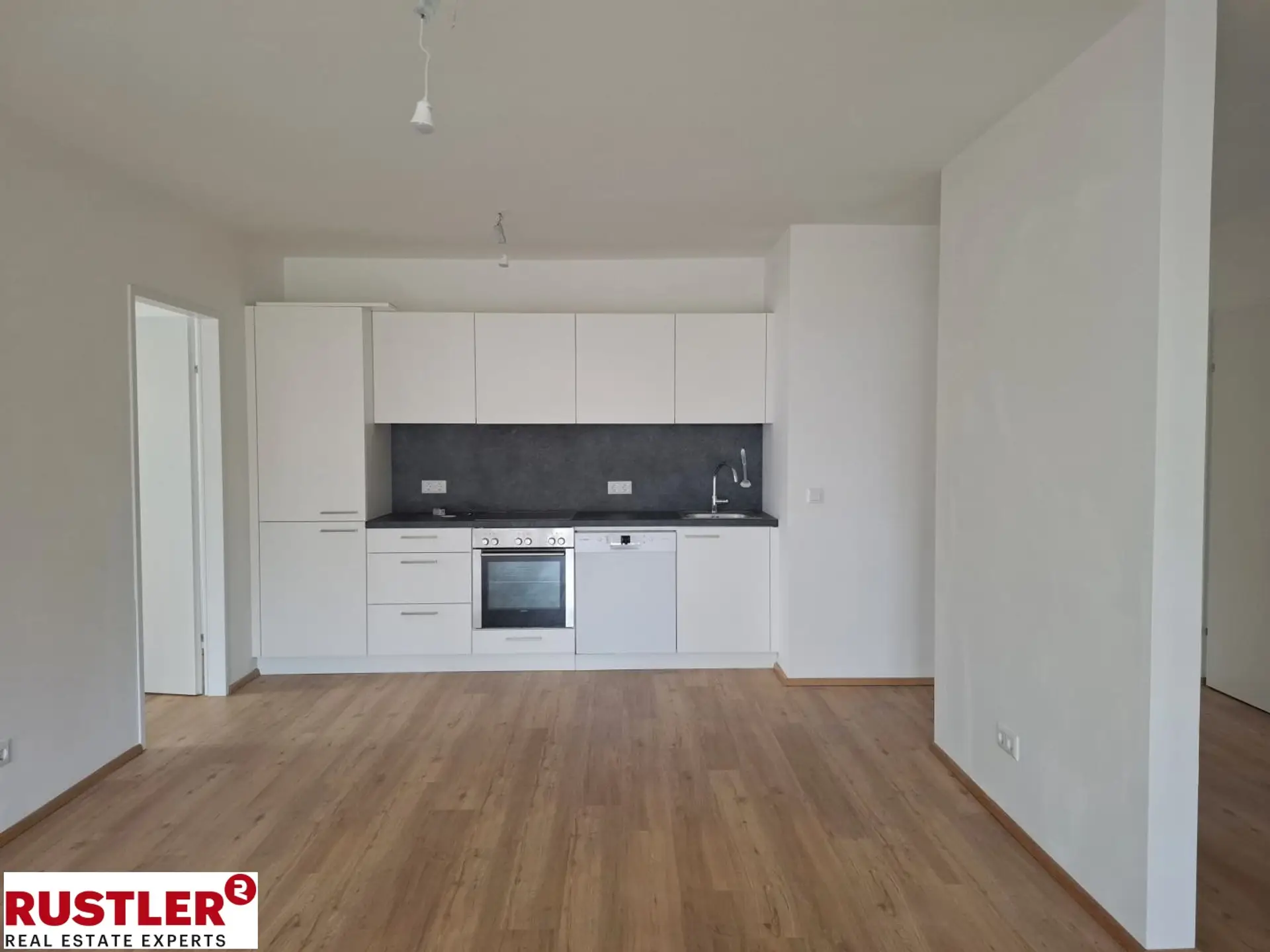 Vollausgestattet mit Herdplatte, Backrohr, Geschirrspüler, Kühlschrank, Gefrierfach