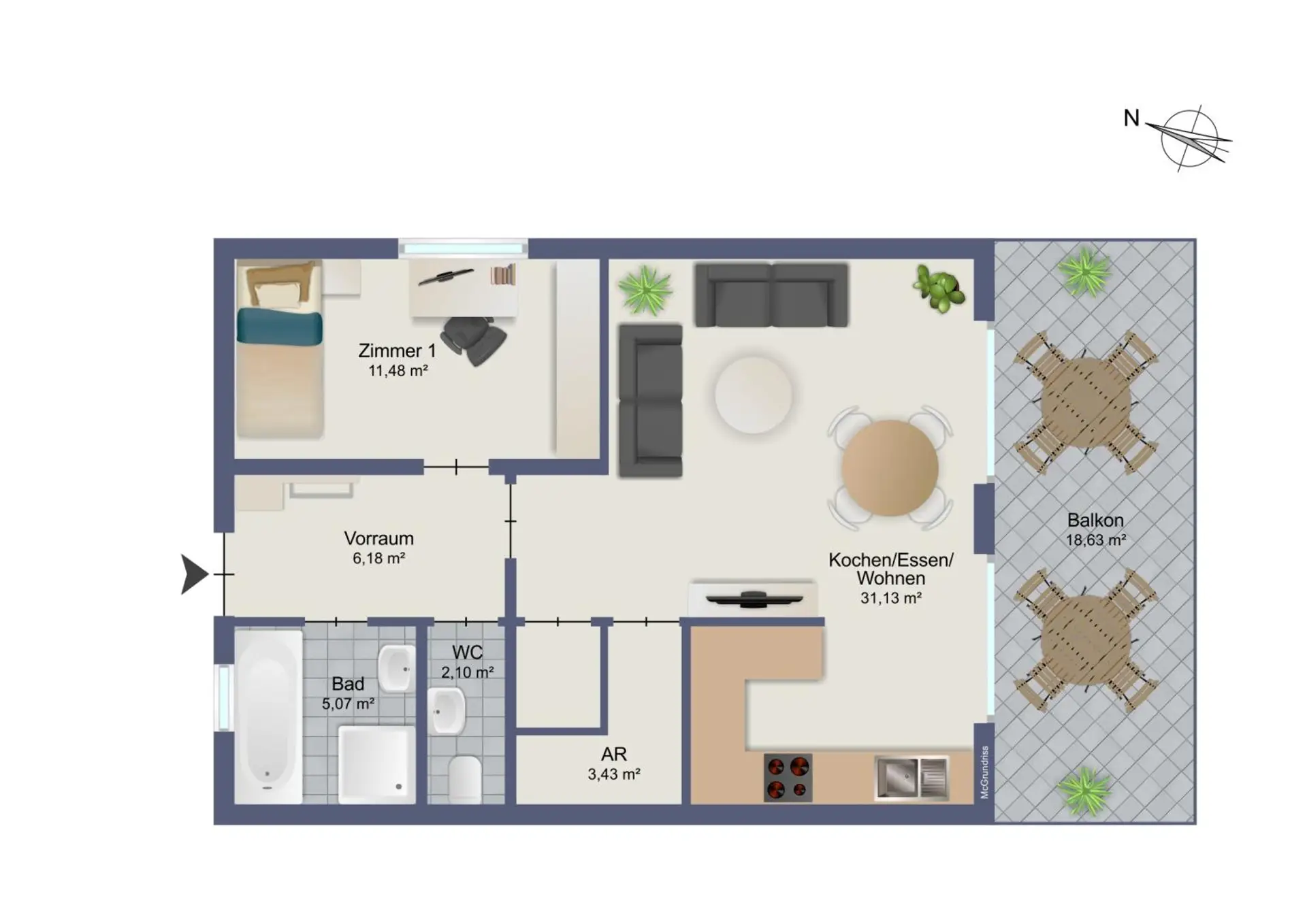 - Großer Küchen-, Wohn- und Essbereich mit Ausgang zum Balkon