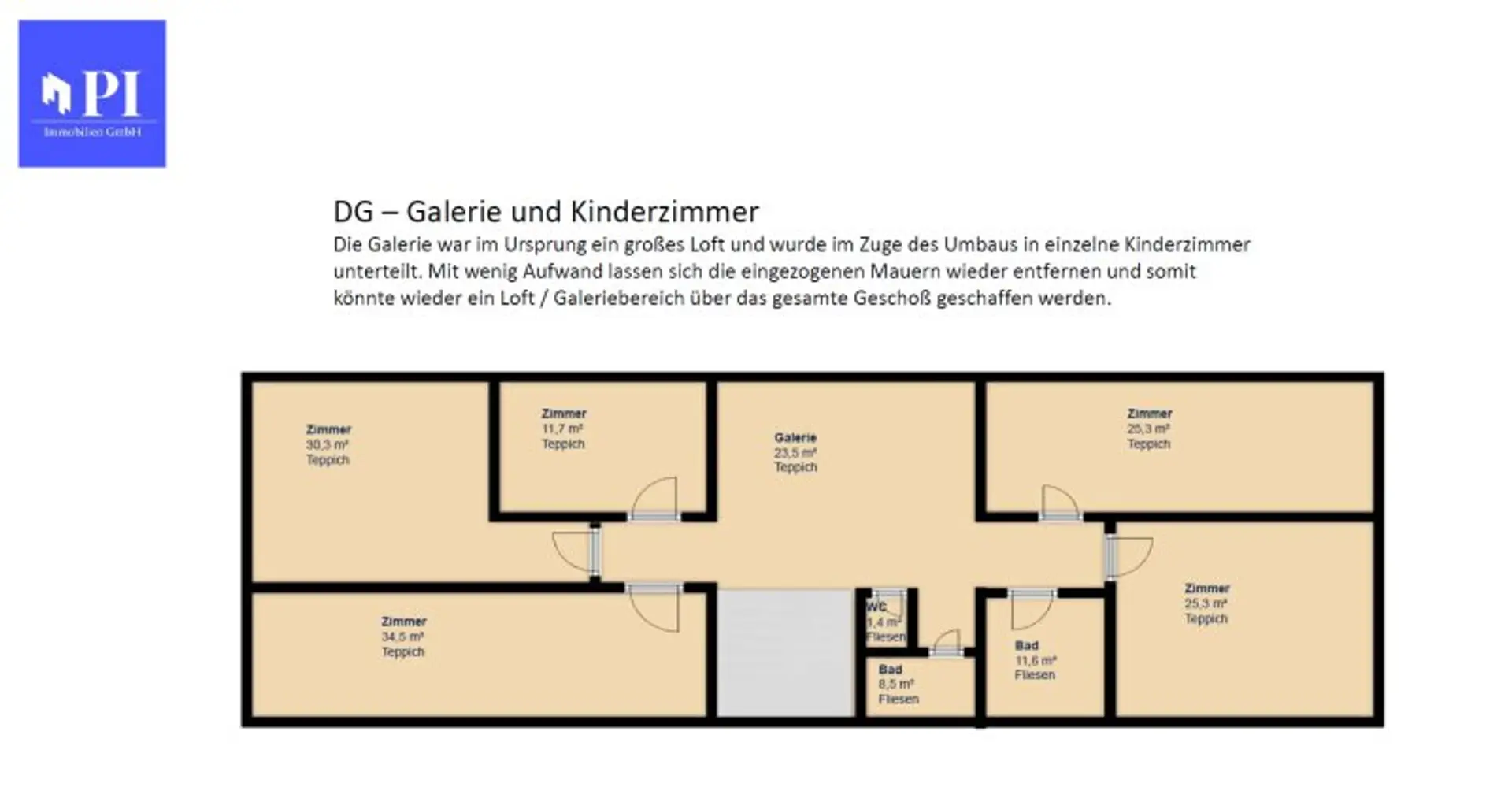 Der Altbestand wurde 2018 generalsaniert und befindet sich heute in einem sehr guten Zustand - das Haus kann ohne viel Aufwand einfach bezogen werden. Im Zuge der Sanierung wurde das Dachgeschoss in viele einzelne Kinderzimmer unterteilt. Das Dachgeschoss besitzt nur wenige tragende Wände und kann auch zu einem großen Loft oder Atelier umgestaltet werden. Das gesamte Haus erstreckt sich über ca. 480 m² Wohnfläche und bietet neben Funktionalität auch optisch viele Highlights. Durch weiteren Platz im Erdgeschoß, sowie einer Werkstatt und einem Ölheizungsraum beträgt die Nutzfläche ca. 560 m². Das Haus wird noch mit einer Ölheizung betrieben - es liegt allerdings schon ein Idee für eine Pellets-Heizung vor. Der große Ölheizungsraum eignet sich perfekt für die Umgestaltung. Das Anwesen eignet sich perfekt für große Familien oder Personen mit viel Platzbedarf.