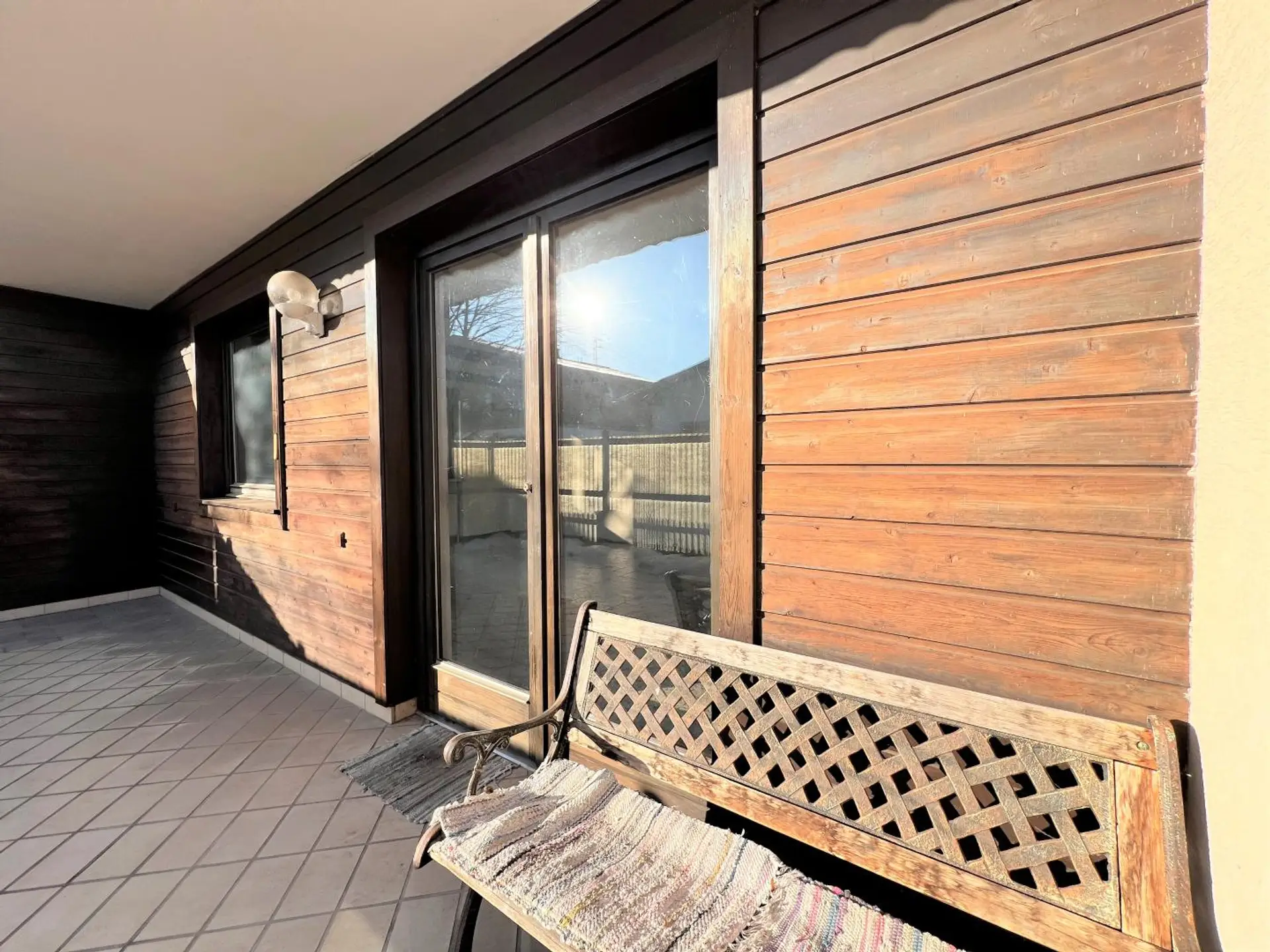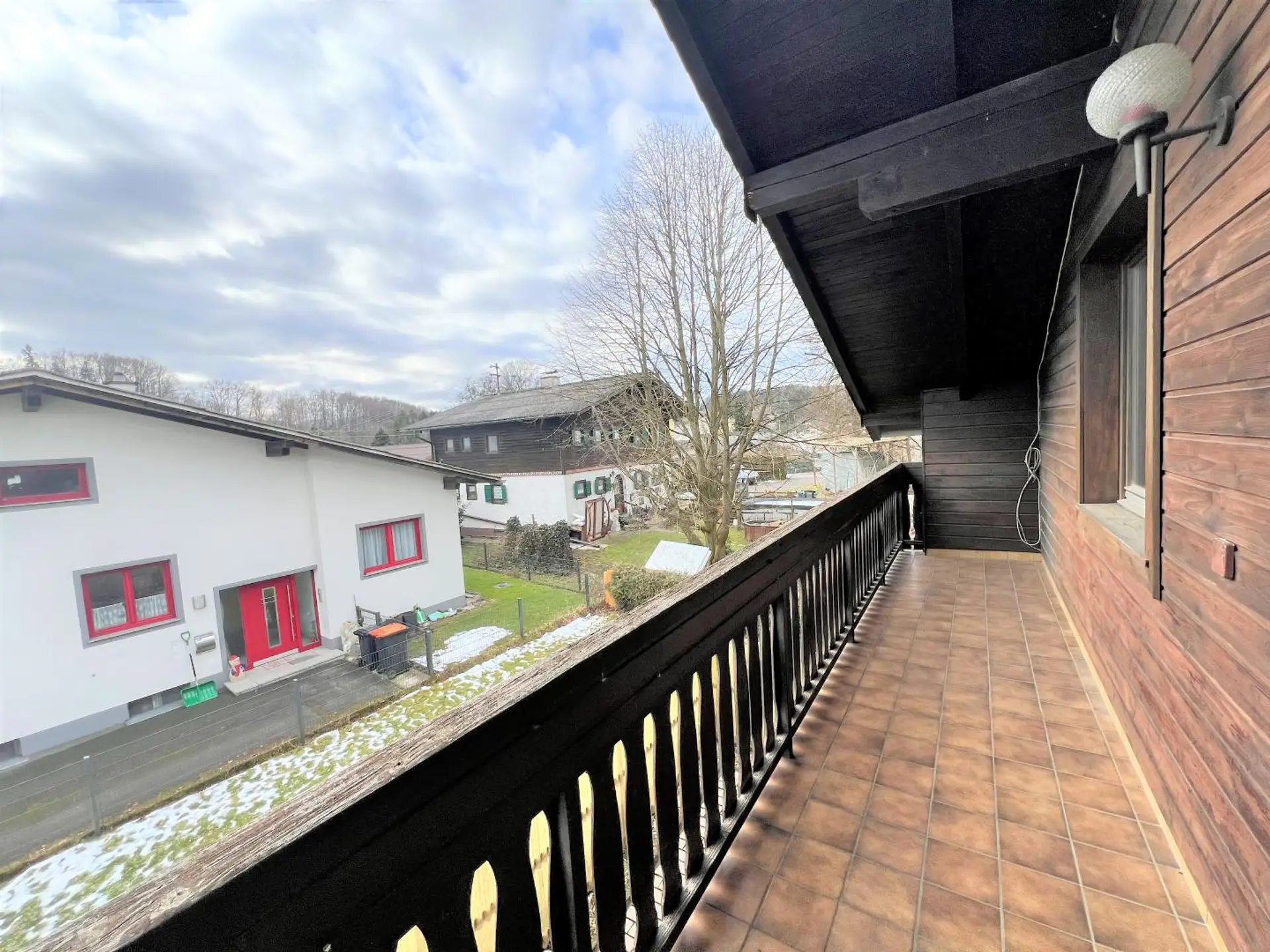 Zum Erwerb steht ein typisches 80-er-Jahre-Stockhaus, das durch die Verwendung von Holzverblendungen und der Holzbalkone Alpenstilcharakter verliehen bekommen hat.