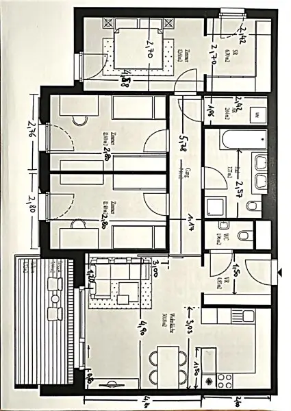 Die Wohnung überzeugt durch eine intelligente Raumaufteilung, helle, großzügige Zimmer, Einbauküche und Tischlerverbauten