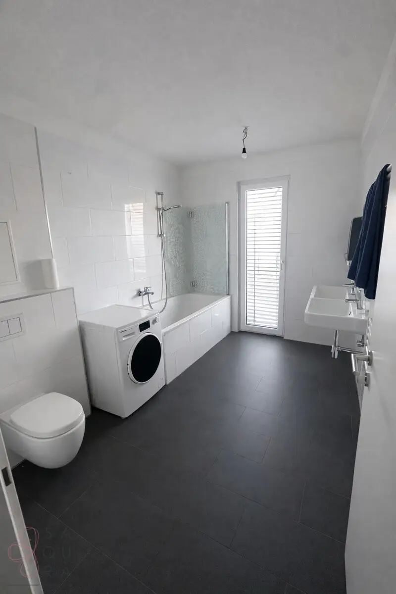 •Badezimmer mit Badewanne, Dusche und Doppelwaschbecken: ca. 7,50 m²
