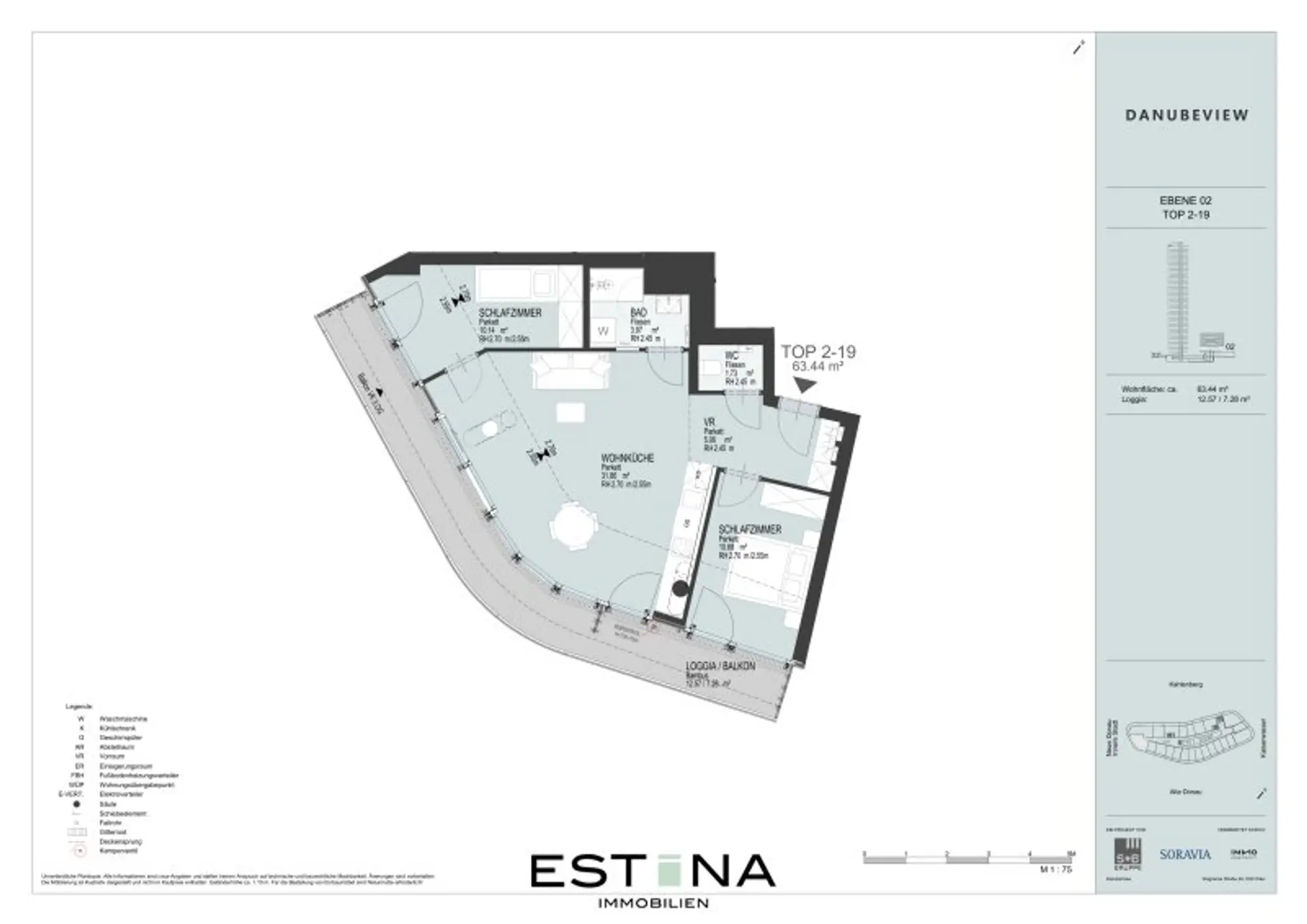 DANUBEVIEW bietet insgesamt 159 Mietwohnungen mit Flächen von 30 m² bis 150 m² und 1 bis 4 Zimmer. Die Grundrisse der Wohnungen gestalten sich offen und lichtdurchflutet. Mit großzügigen Fensterfronten schaffen diese ein freies Raumgefühl mit herrlichem Ausblick auf die Neue Donau und die Wiener Innenstadt. Durchdachte Außenplätze mit einem ansprechenden Landschaftsdesign verbinden sich zum persönliche "art of living" Lebensmittelpunkt. Zusätzlich lassen sich private Arbeitsplätze im Haus anmieten.