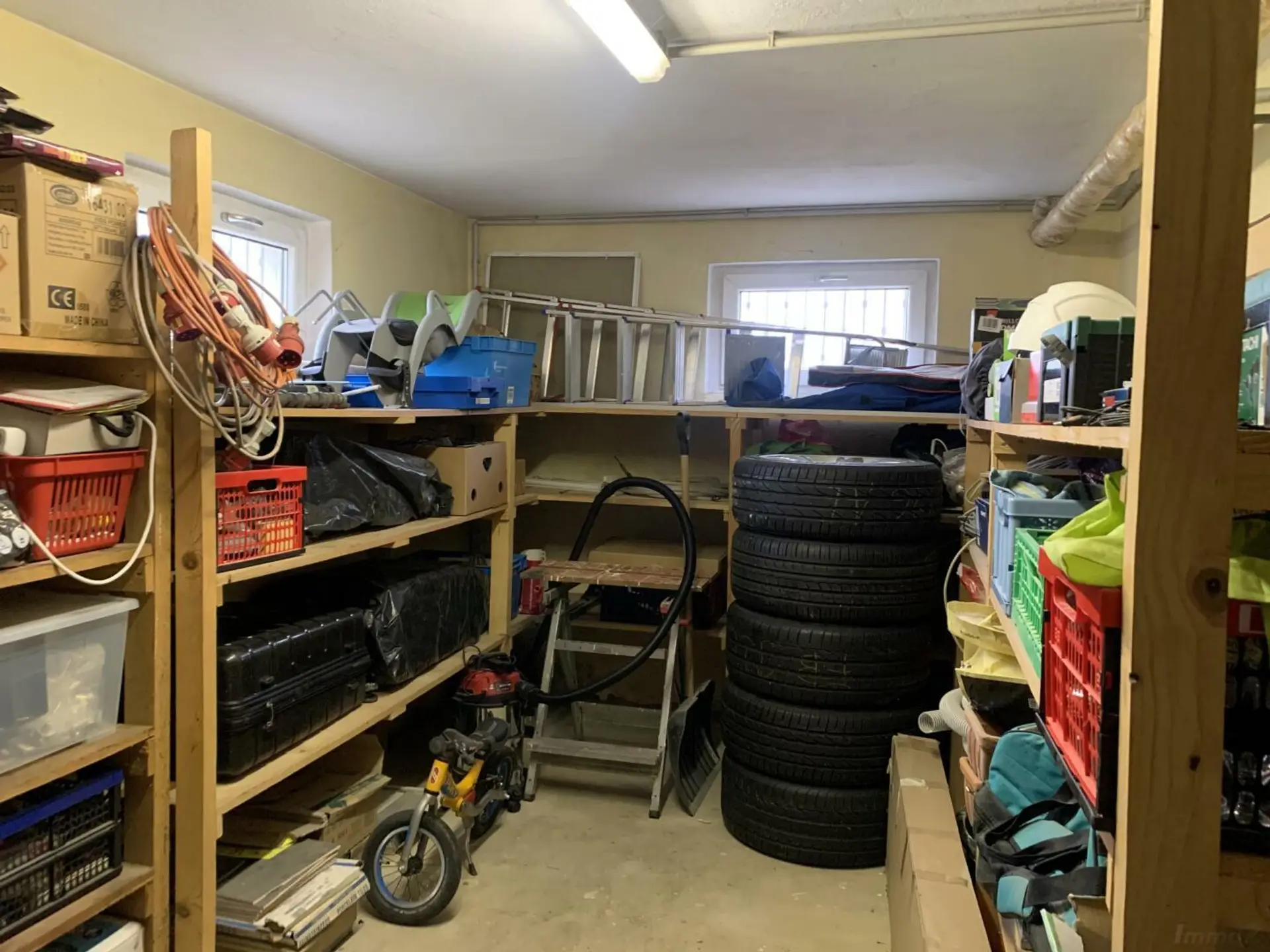 WC separat Vollkeller, mit genügend Abstellflächen sowie einem urigen, bestens ausgestatteten Partyraum.