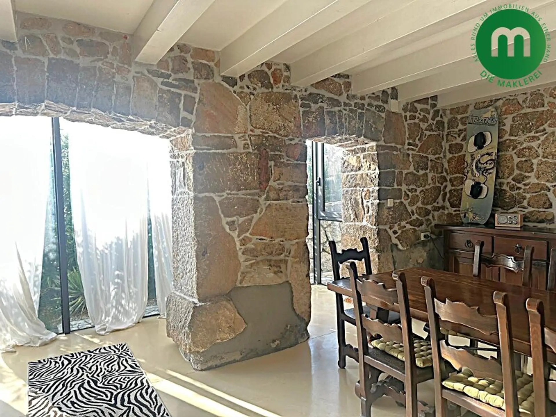 Der Außenbereich verfügt über eine großzügig terrassierte Fläche mit einem Pool, Außendusche (Solar) und weitere Terrassen mit Blick auf das Meer! Das Haus wurde 2013 komplett und sehr gut restauriert und renoviert, zeitlos möbliert und ausgestattet. Es befindet sich in ländlicher Umgebung in einem ruhigen Dorf, ca. 4 km vom Meer entfernt. Ideal für den Tourismus! Das Haus verfüg außerdem über ein Lager sowie einen Maschinenraum für das Schwimmbad und zwei Parkplätze.