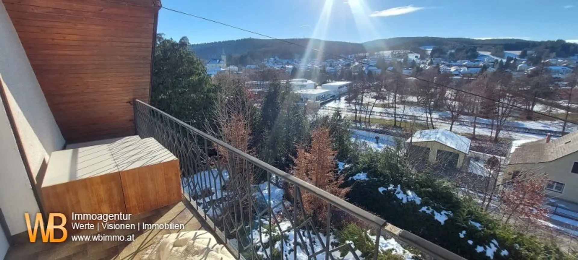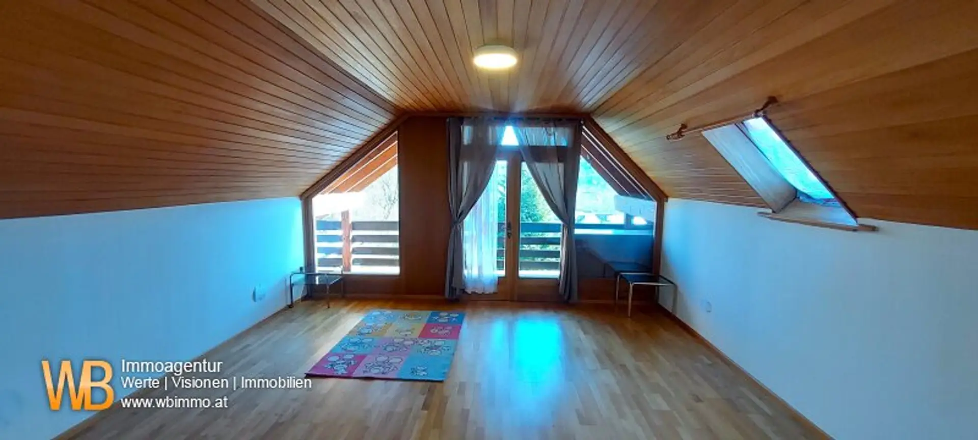 Im Dachgeschoß befindet sich das große, ostseitige DG-Wohnzimmer (25m²) mit großer überdachter Loggia, Blick über den eigenen Garten bis zur Burg, ein süd-westseitiges Zimmer, auch hier mit Balkon & herrlichem Panoramablick sowie ein großer Abstellraum in den Dachschrägen.