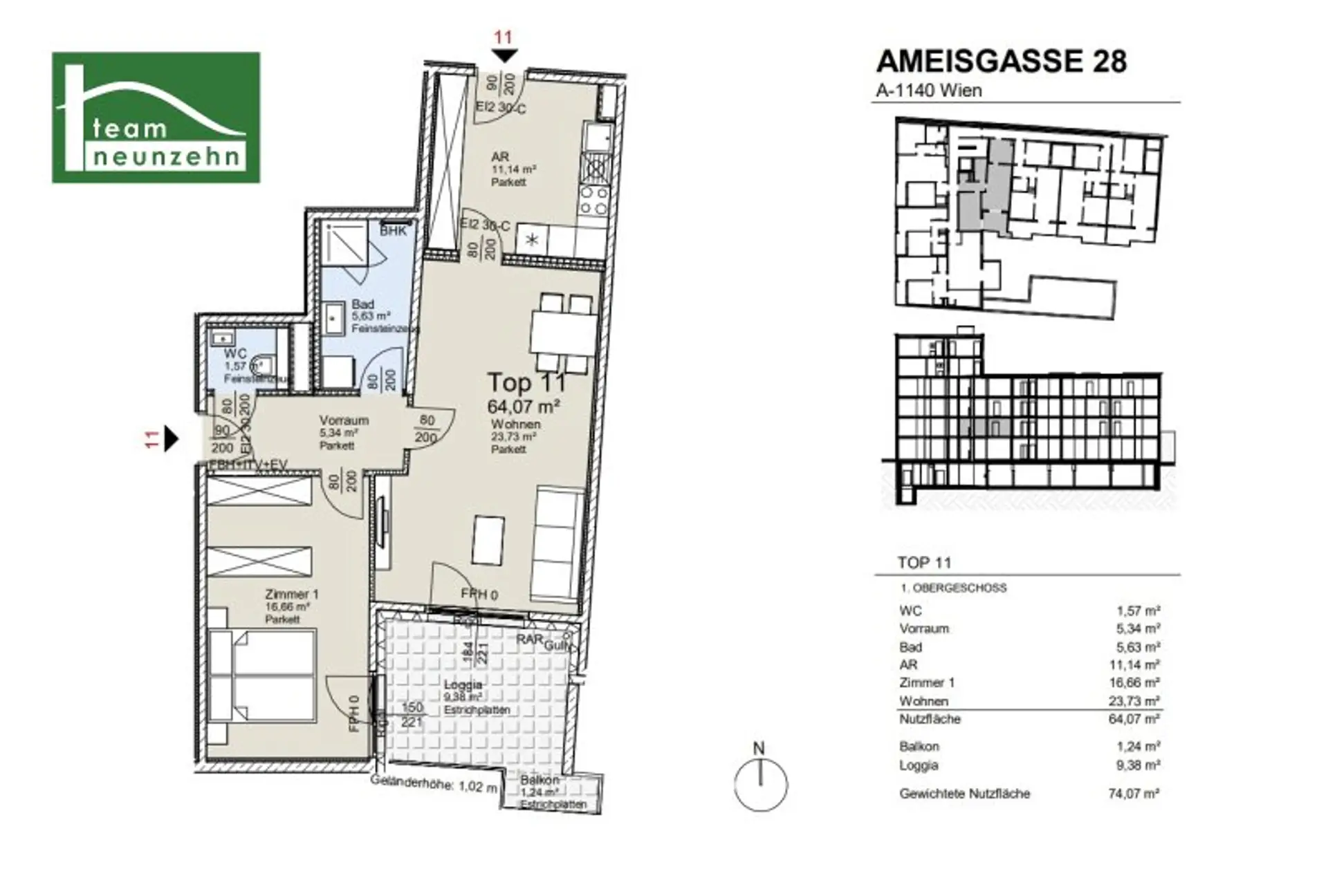 Diese 3-Zimmer-Wohnung mit ca. 64,07 m² Wohnfläche, einem Balkon + Loggia mit insgesamt ca. 10,62 m² liegt im 1. Obergeschoss und gliedert sich in folgende Raumaufteilung: