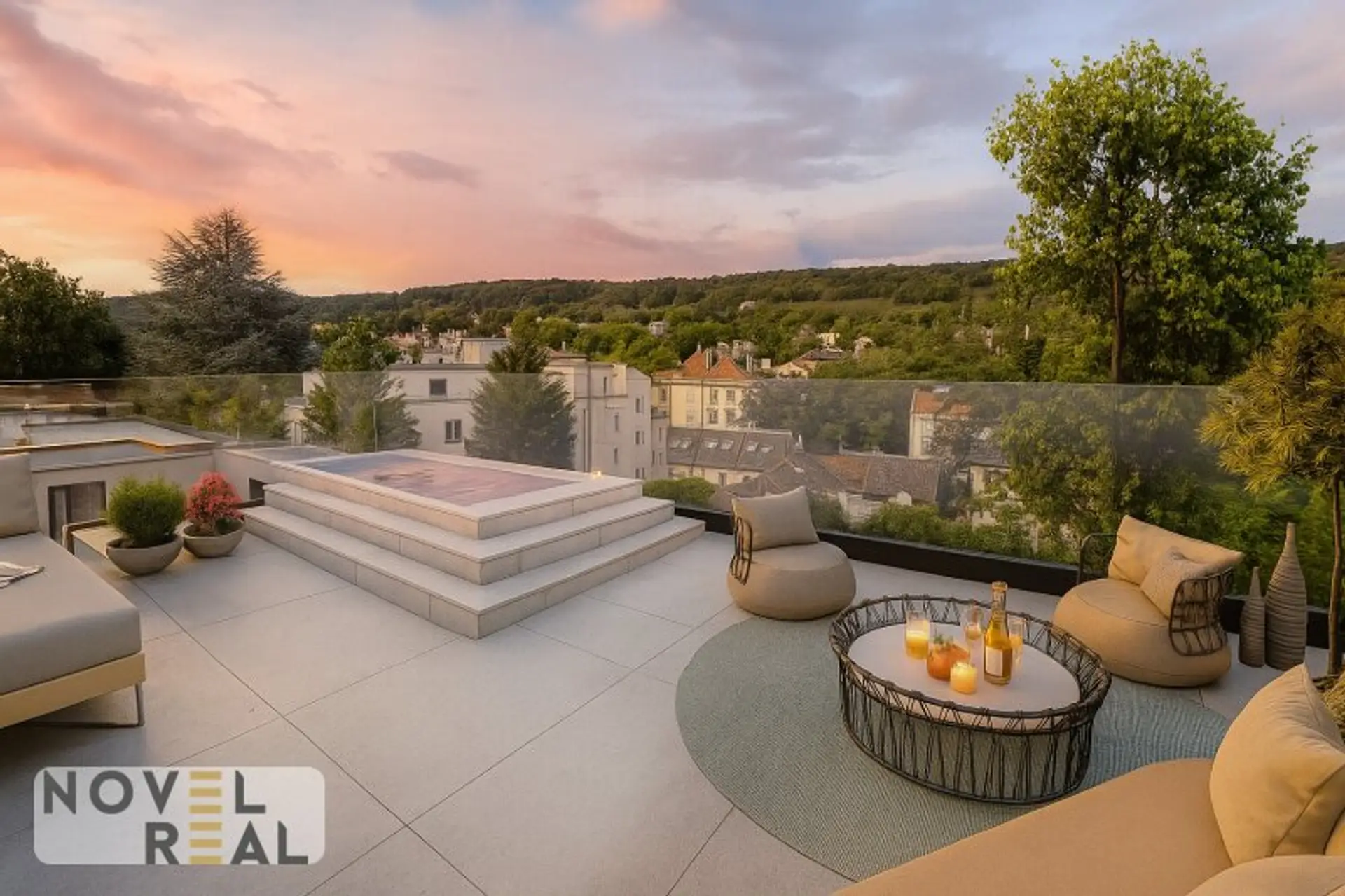 Die Dachterrasse im 2. Dachgeschoß bietet sich optimal für die Installation eines privaten Jacuzzi / Whirlpool an. (optional )
