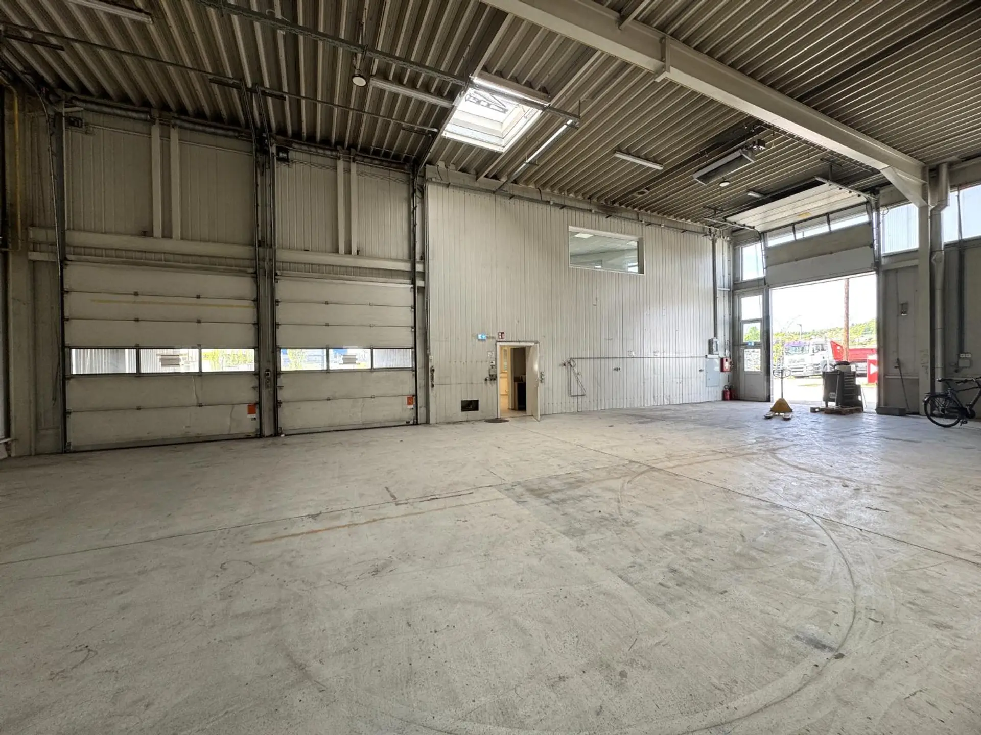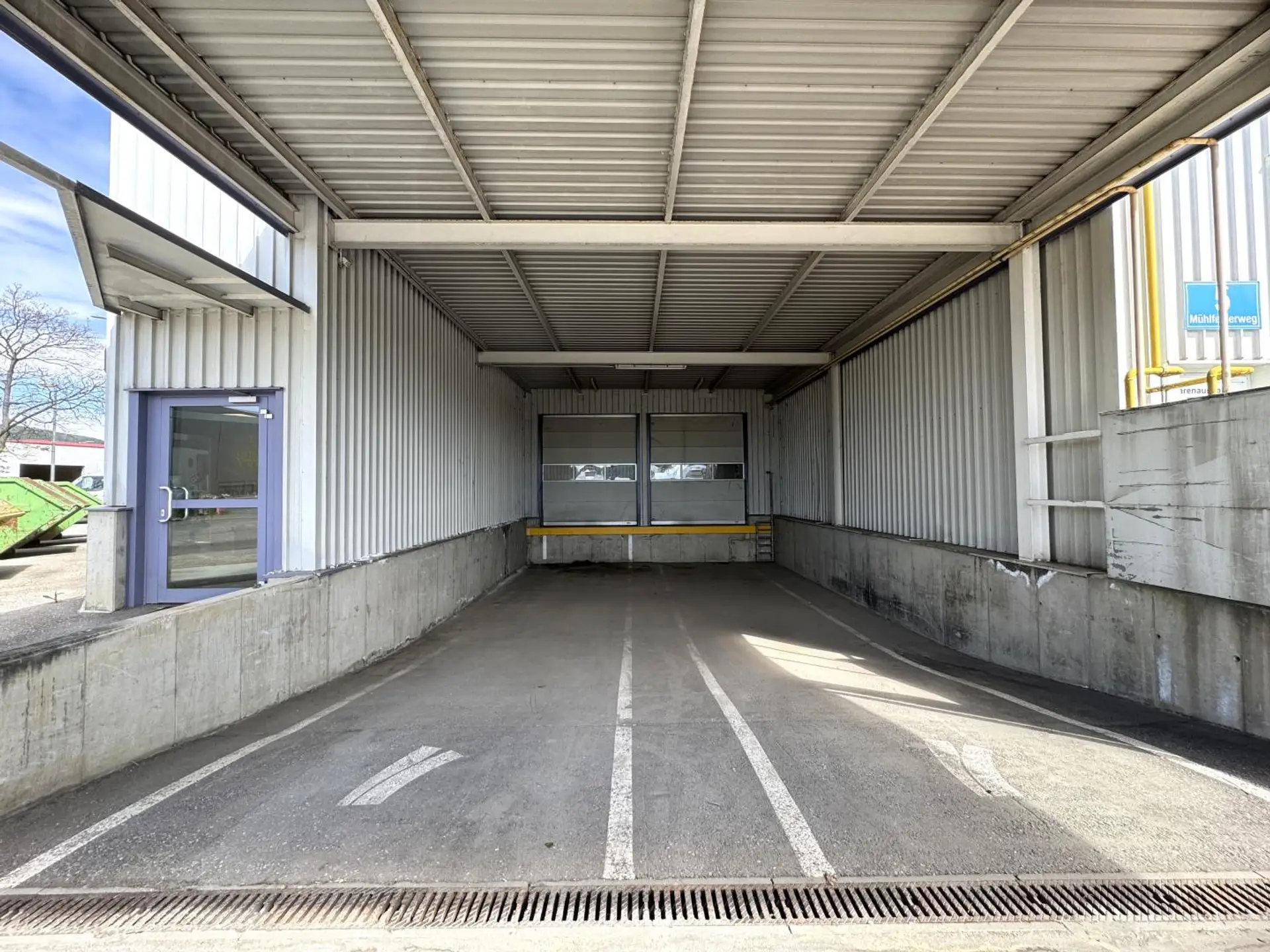- Hallenteil Süd ca. 200 m²: 1 ebenerdiges Tor, 2 überdachte LKW-Rampen, beheizt, BUK ca. 6 m, zzgl. Flugdach ca. 112,5 m² und Freifläche ca. 241 m²