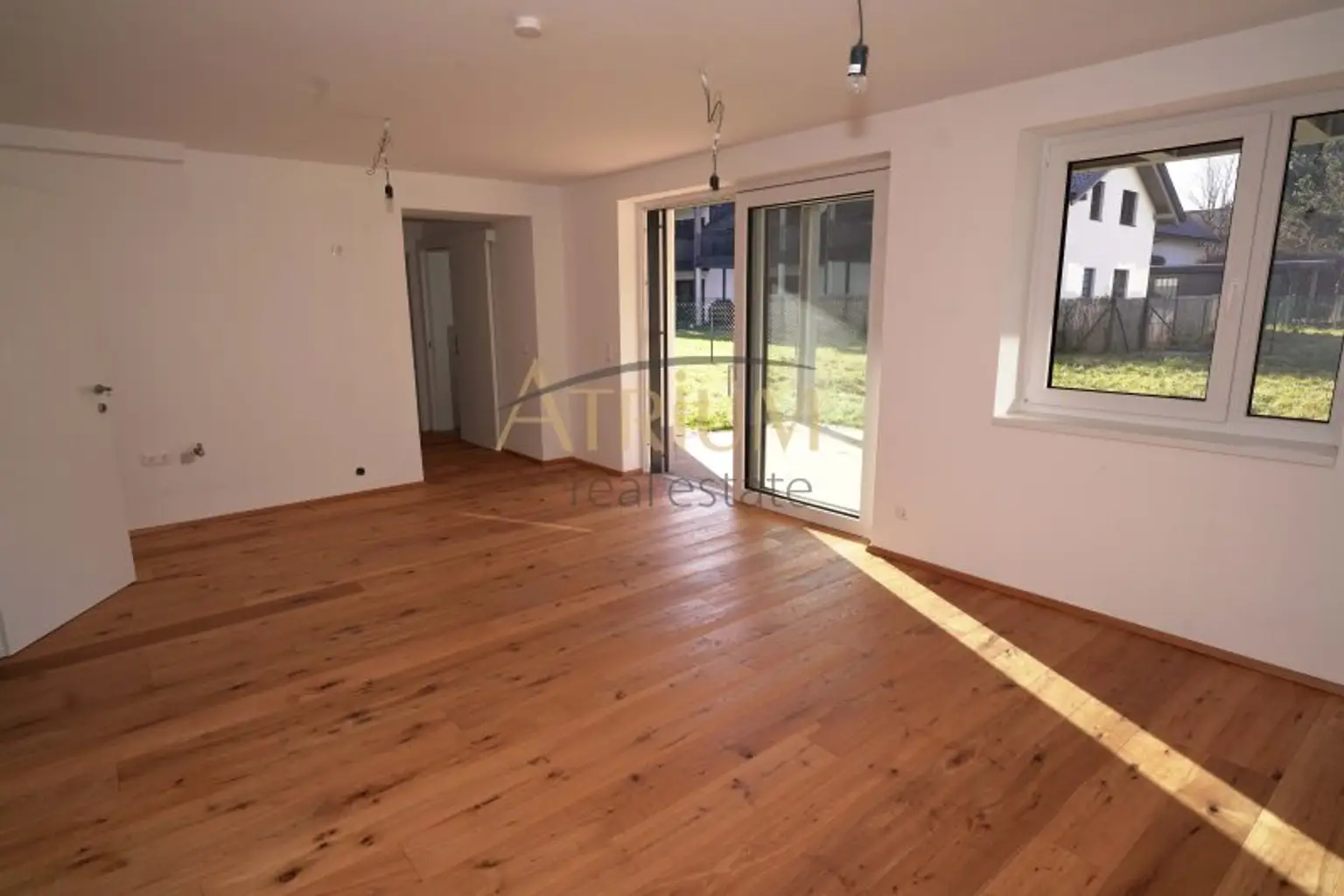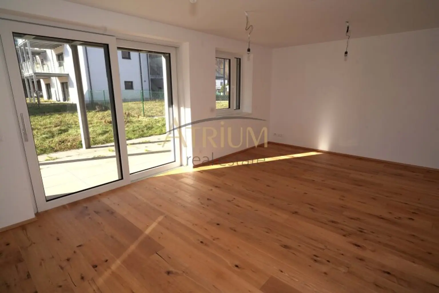 Bodenbeläge: Fertigparkett für Küchen, Zimmer und Wohnbereiche; Fliesen in Abstellraum, Bad und WC; Steinplatten auf Terrassen und Balkonen.