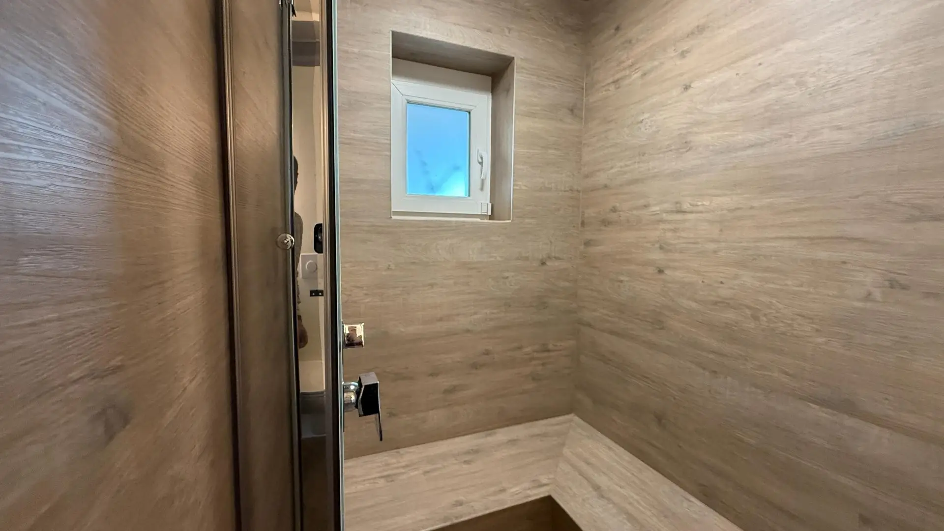 Fitnessraum mit Badezimmer, Sauna und zusätzlicher Dampfdusche