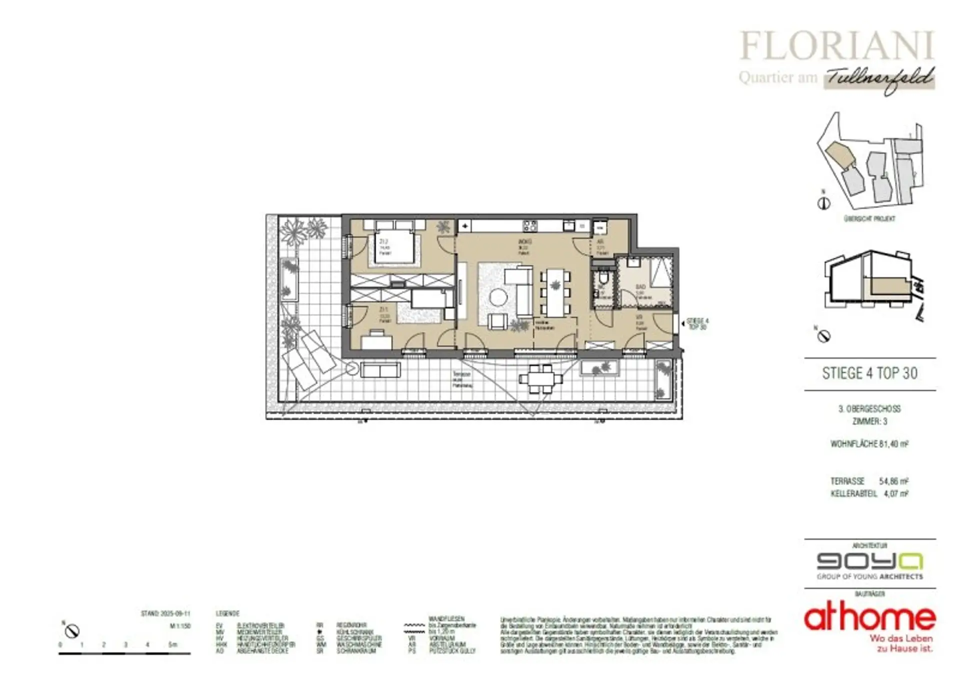 Durch die Errichtung auf bereits erschlossenem Terrain wird kein neuer Boden versiegelt. Großzügige Grünflächen zwischen den Bauteilen des Quartiers sorgen für den Erhalt attraktiver Freiräume und tragen so zu einer hohen Wohnqualität bei. Der Baustart durch den erfahrenen Bauträger at home [https://www.athome.at/ueber-uns/] ist bereits erfolgt und bietet den neuen Eigentümern durch zügigen Baufortschritt die gewünschte Sicherheit für die Investition in ihren zukünftigen Lebensraum.