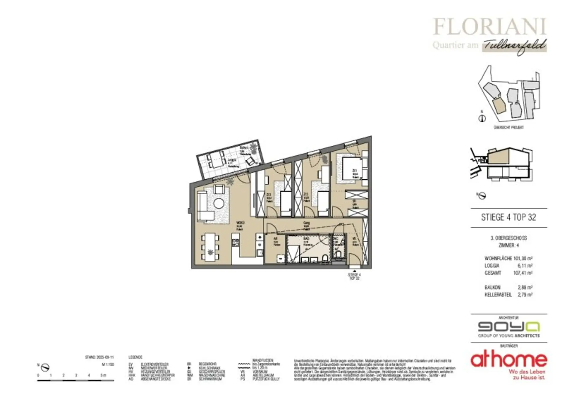 Durch die Errichtung auf bereits erschlossenem Terrain wird kein neuer Boden versiegelt. Großzügige Grünflächen zwischen den Bauteilen des Quartiers sorgen für den Erhalt attraktiver Freiräume und tragen so zu einer hohen Wohnqualität bei. Der Baustart durch den erfahrenen Bauträger at home [https://www.athome.at/ueber-uns/] ist bereits erfolgt und bietet den neuen Eigentümern durch zügigen Baufortschritt die gewünschte Sicherheit für die Investition in ihren zukünftigen Lebensraum.