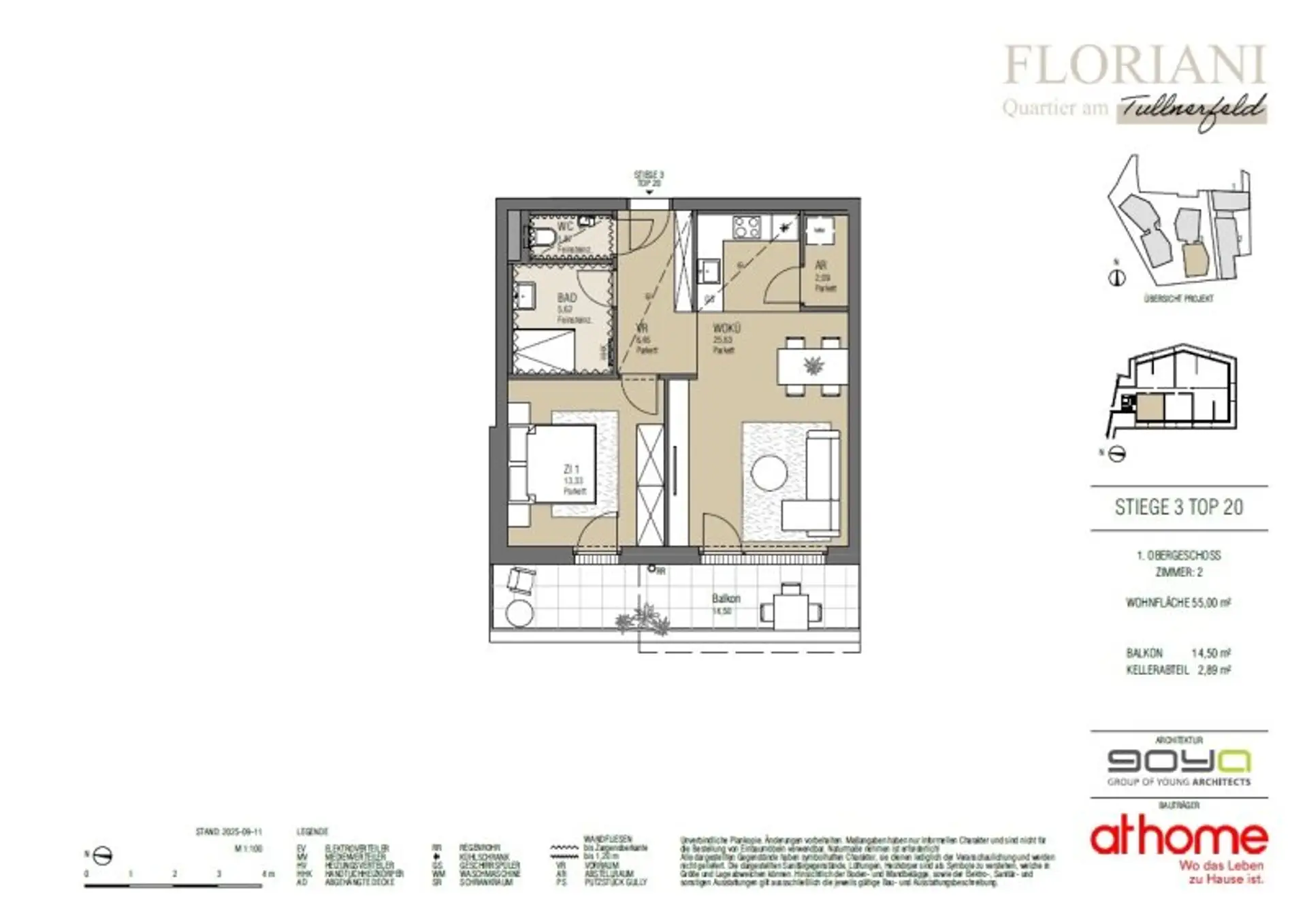 Durch die Errichtung auf bereits erschlossenem Terrain wird kein neuer Boden versiegelt. Großzügige Grünflächen zwischen den Bauteilen des Quartiers sorgen für den Erhalt attraktiver Freiräume und tragen so zu einer hohen Wohnqualität bei. Der Baustart durch den erfahrenen Bauträger at home [https://www.athome.at/ueber-uns/] ist bereits erfolgt und bietet den neuen Eigentümern durch zügigen Baufortschritt die gewünschte Sicherheit für die Investition in ihren zukünftigen Lebensraum.