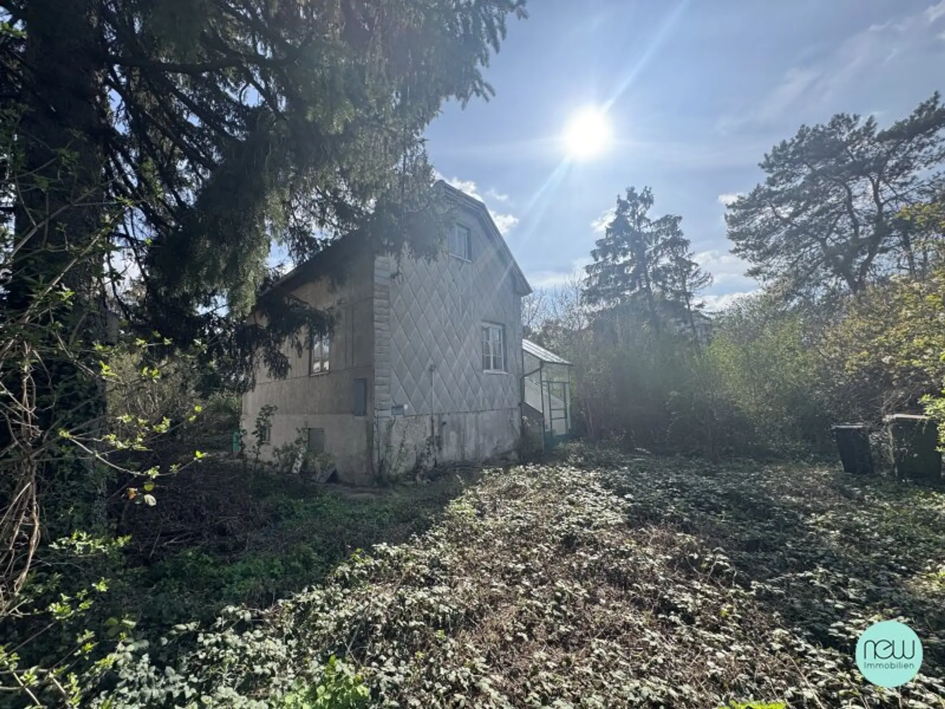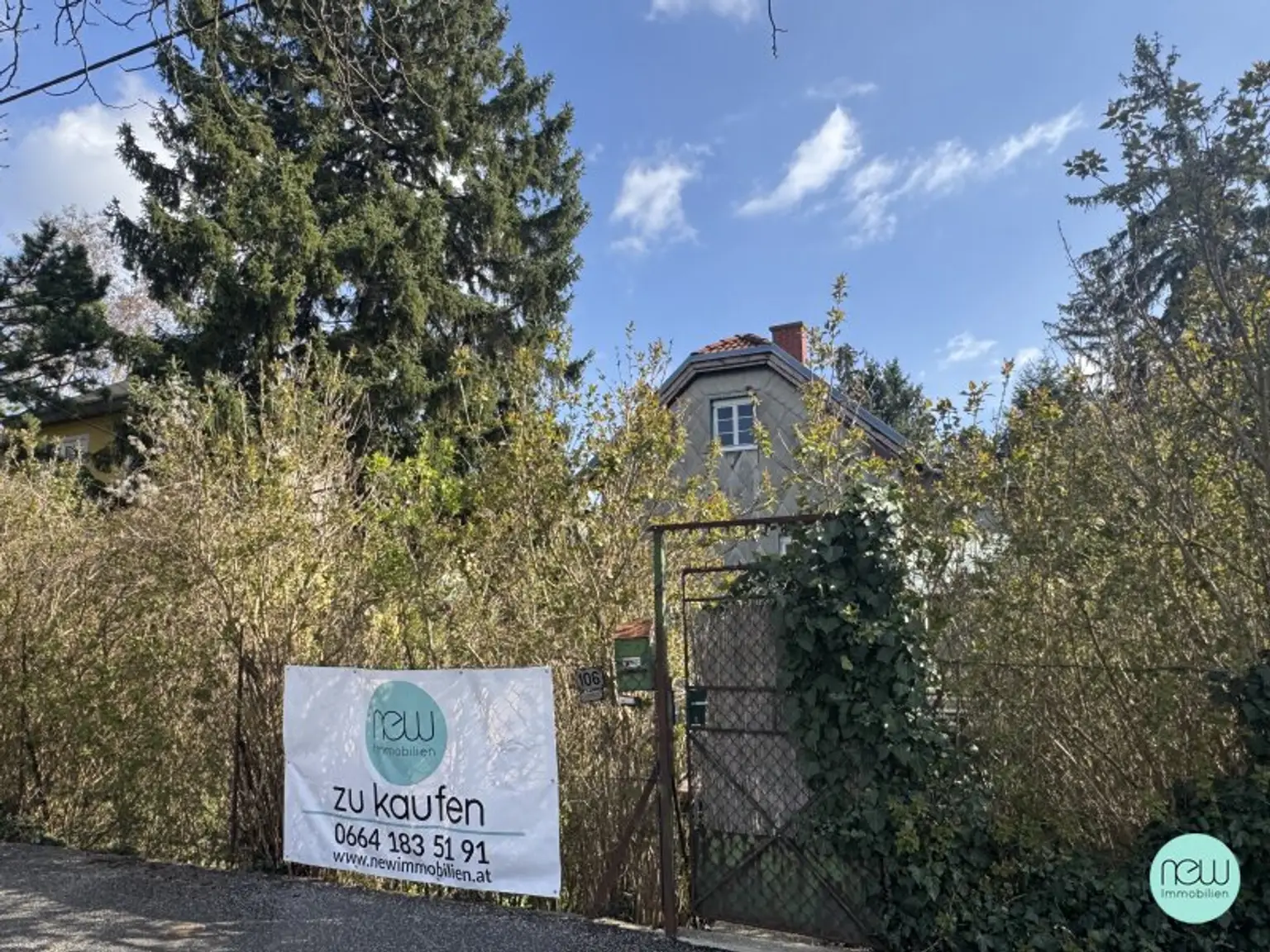 Ebenes, rechteckiges Baugrundstück in Nord / Süd Ausrichtung an der Gerasdorfer Straße mit Altbestand.