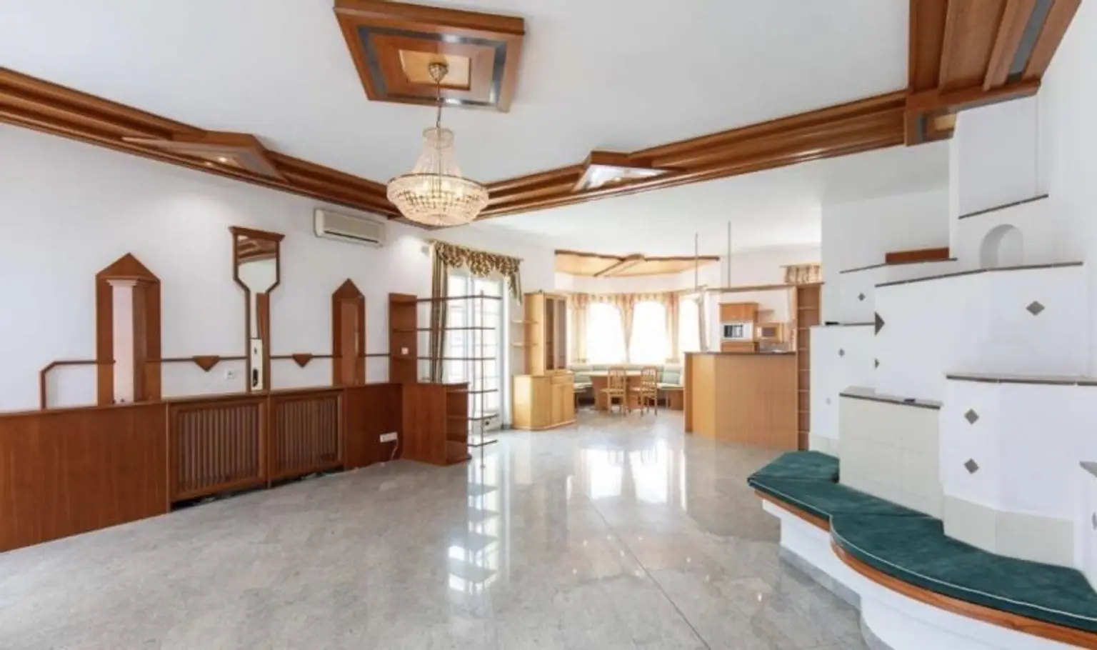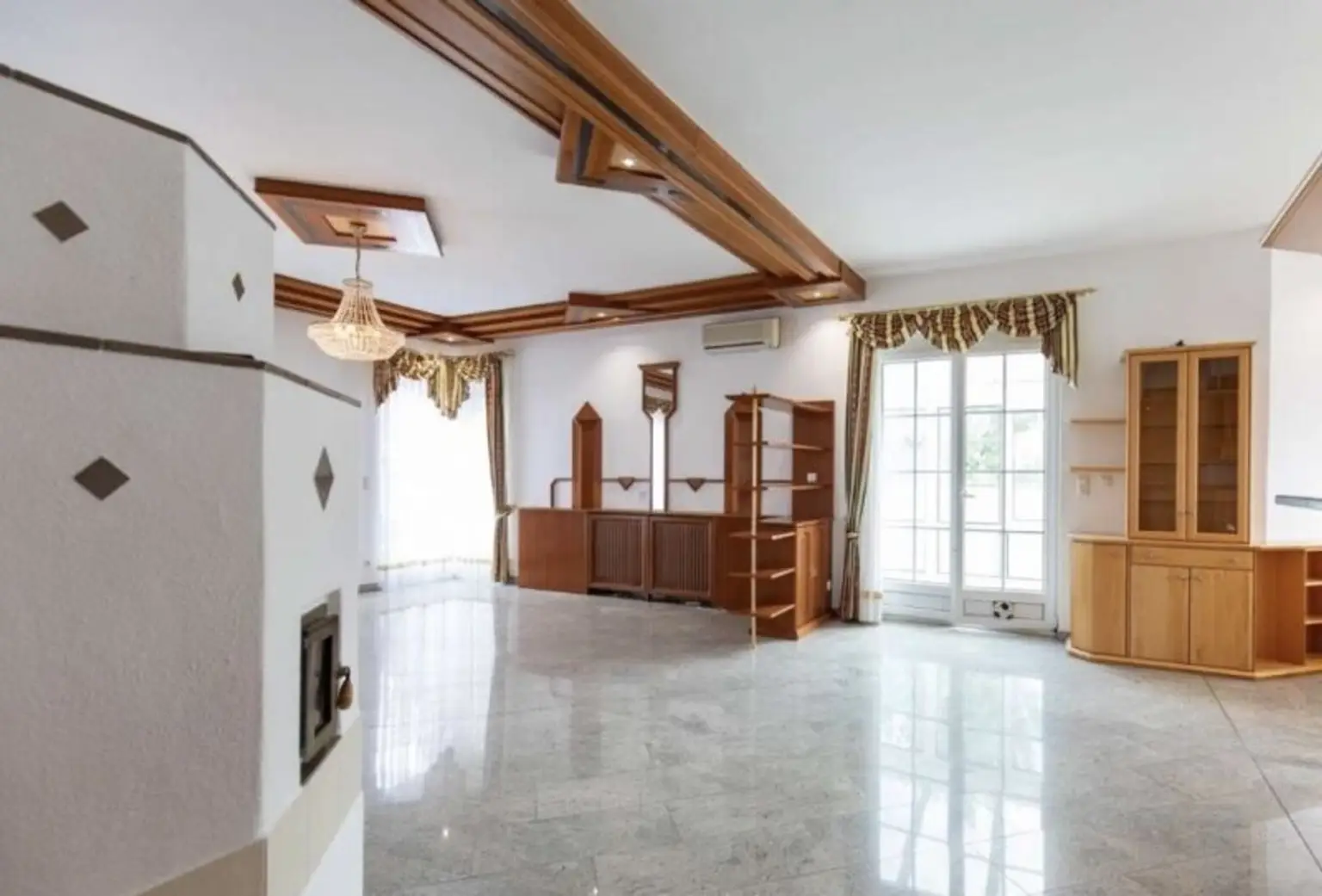 Zusätzlich zur neuen Luftwärmepumpe (Fußbodenheizung) befindet sich im großen Wohnbereich der bestens integrierte Kachelofen, welcher wohlige Wärme an kalten Wintertagen spendet und zusätzlich eine angenehme Wohnatmosphäre garantiert.