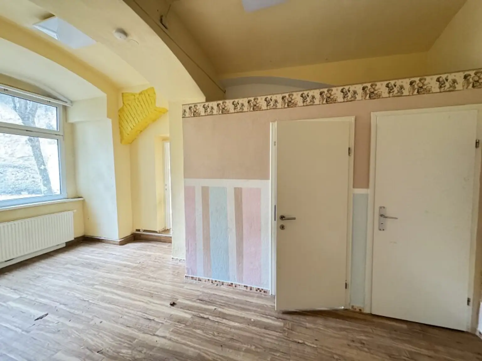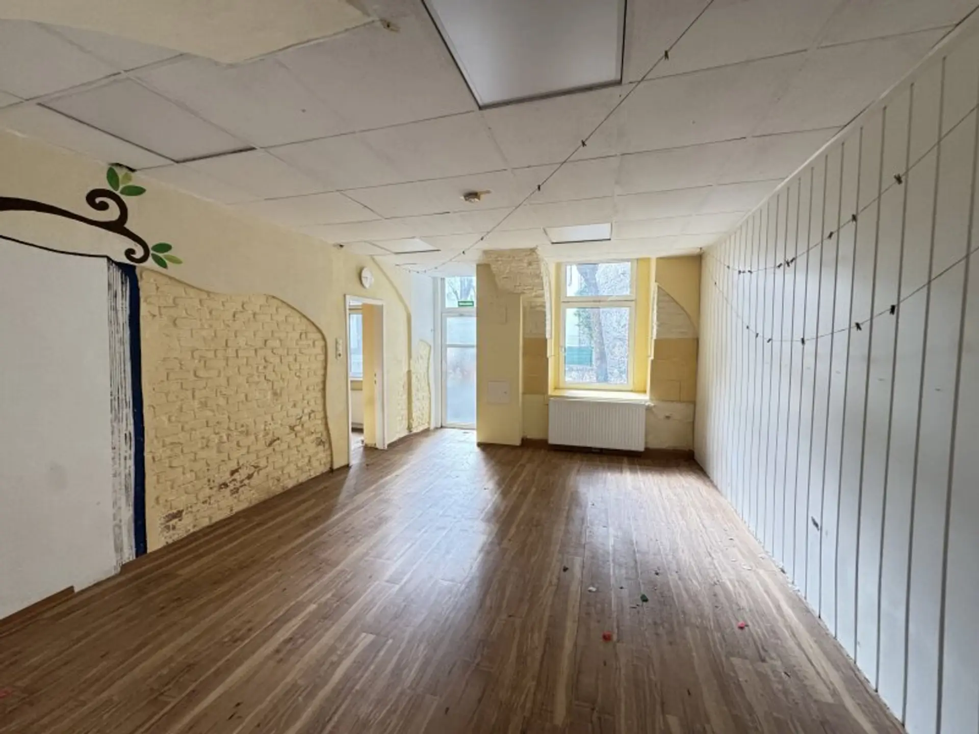Die Einheit wurde zuletzt als Kindergarten genutzt und verfügt über eine funktionale Raumstruktur, die sich ideal an neue Konzepte anpassen lässt. Der aktuelle Zustand bietet bewusst Gestaltungsspielraum für individuelle Umbauten und moderne Nutzungsideen.